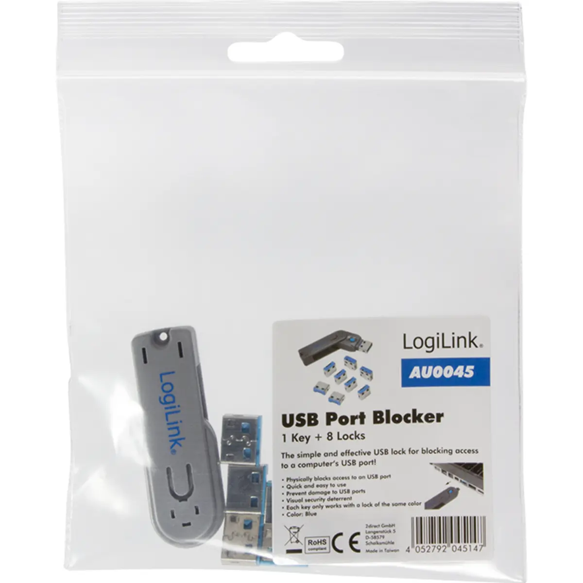 Logilink AU0045 - Conjunto de 8 bloqueadores de portas USB-A + chave de remoção
