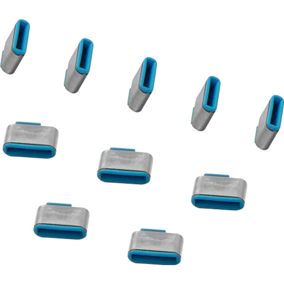 Conjunto de 10 bloqueadores de portas USB-C para impedir o acesso físico às portas USB de um computador. Este kit é ideal para administradores de sistemas que desejam evitar ligações de dispositivos de armazenamento como pendrives USB e leitores MP3, protegendo dados e o sistema contra cópias não autorizadas e infecções. Os bloqueadores oferecem uma ação dissuasora visível, são simples de usar, evitam danos às portas e utilizam chaves de cores correspondentes; a cor do conjunto é azul.