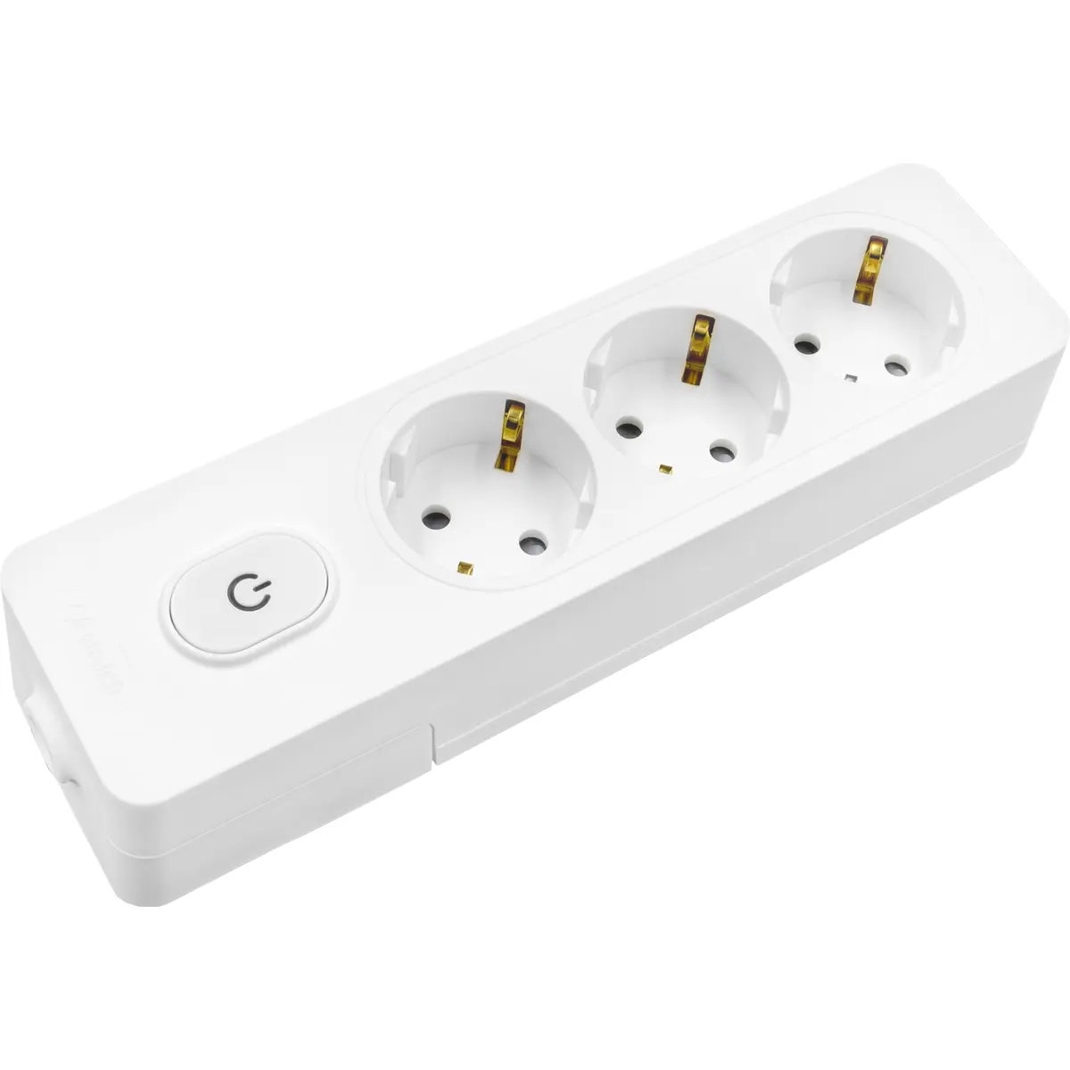 Bloco de tomadas com três fichas tipo Schuko, interruptor integrado e corpo de cor branca, adequado para uso interior. Não possui cabo elétrico e suporta até 3680W, ideal para organizar dispositivos elétricos em casa ou no escritório com uma única tomada. Desenho compacto, montagem simples e funcionamento seguro, permitindo ligar vários aparelhos simultaneamente numa só tomada, sem enrolamentos ou fios soltos. Perfeito para espaços pequenos onde a gestão de tomadas é necessária.