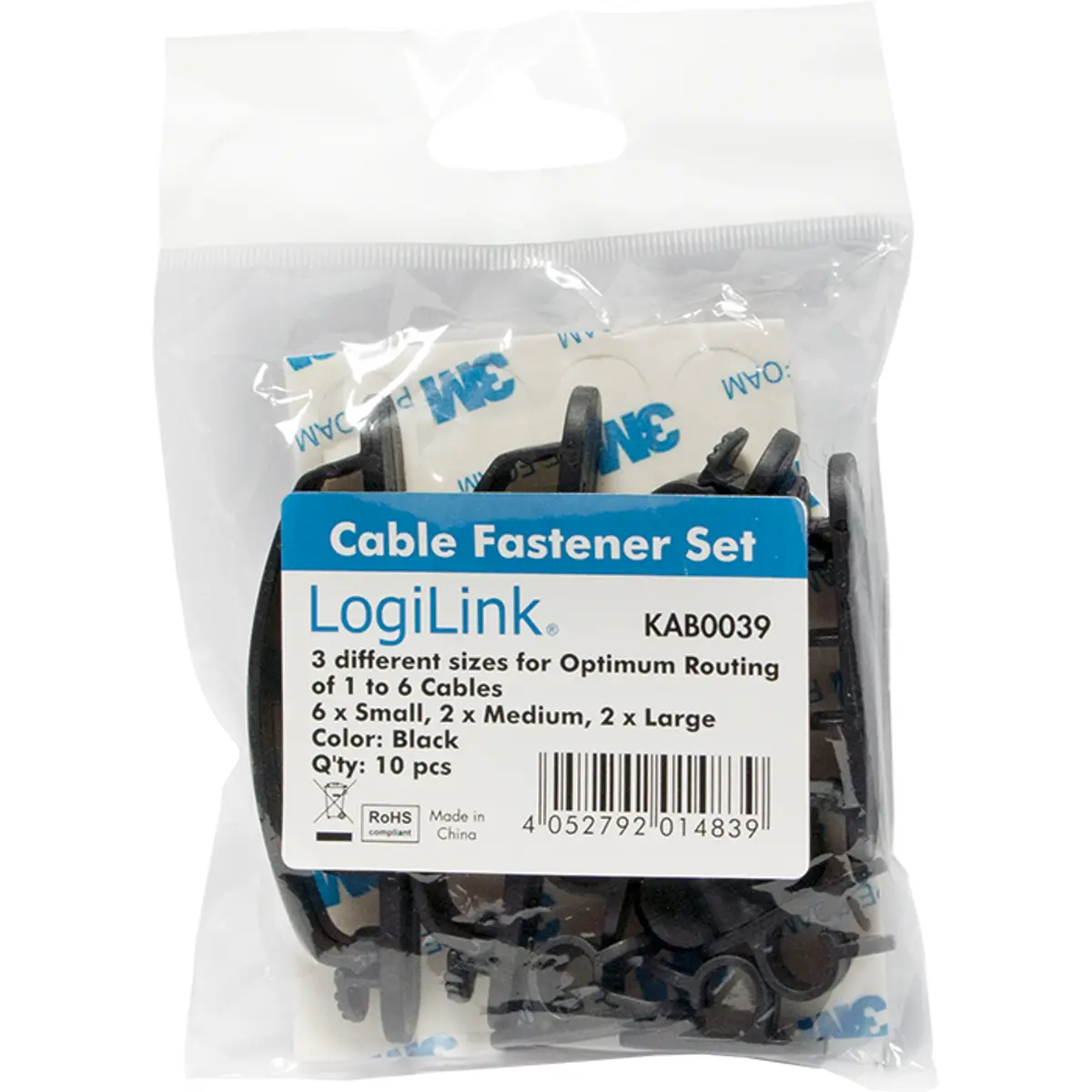 Logilink KAB0039 - Conjunto de 10 organizadores de cabos c/ tampa adesivos