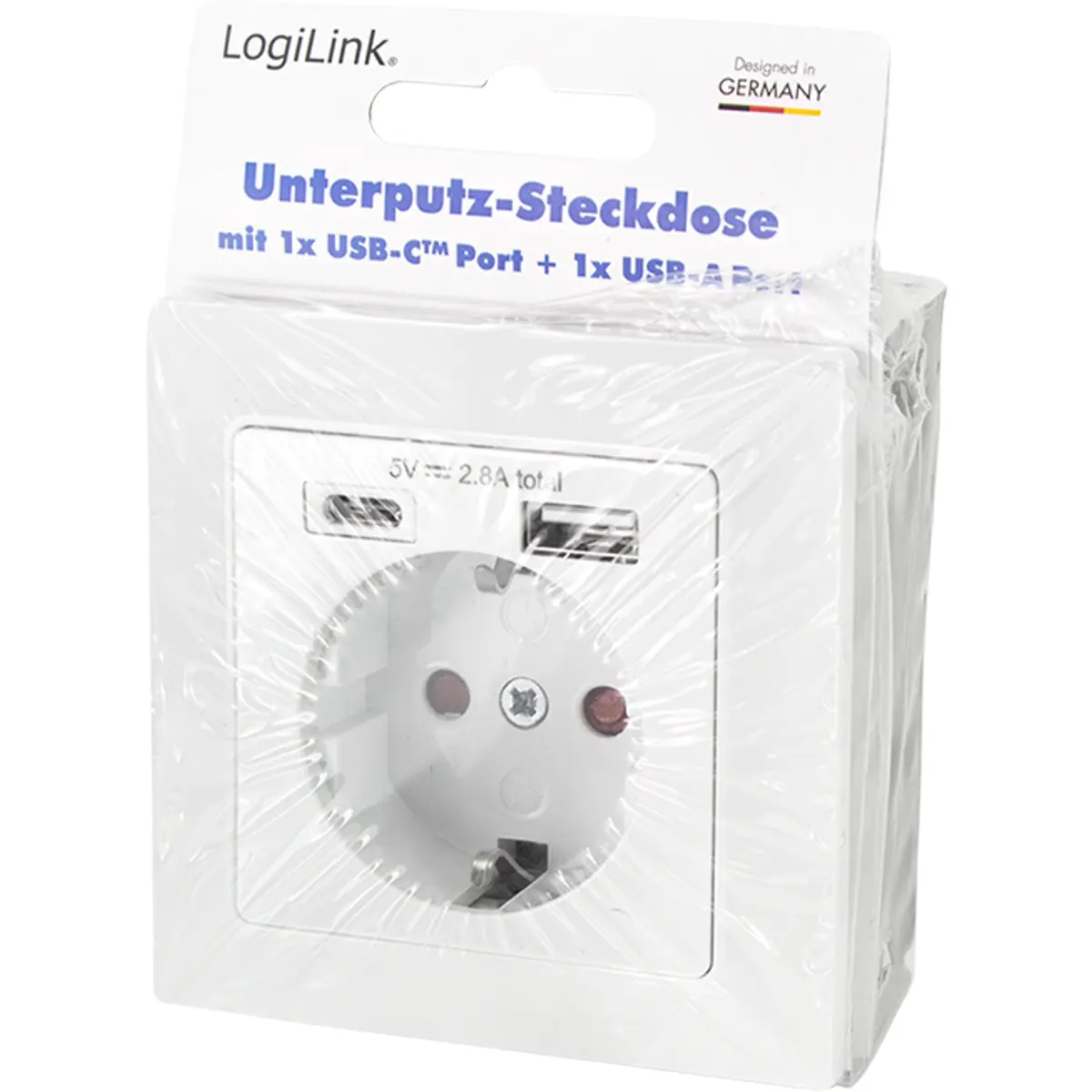 Logilink PA0262 - Tomada de parede schuko 230VAC 16A c/ USB-A + USB-C (5VDC 2.8A)