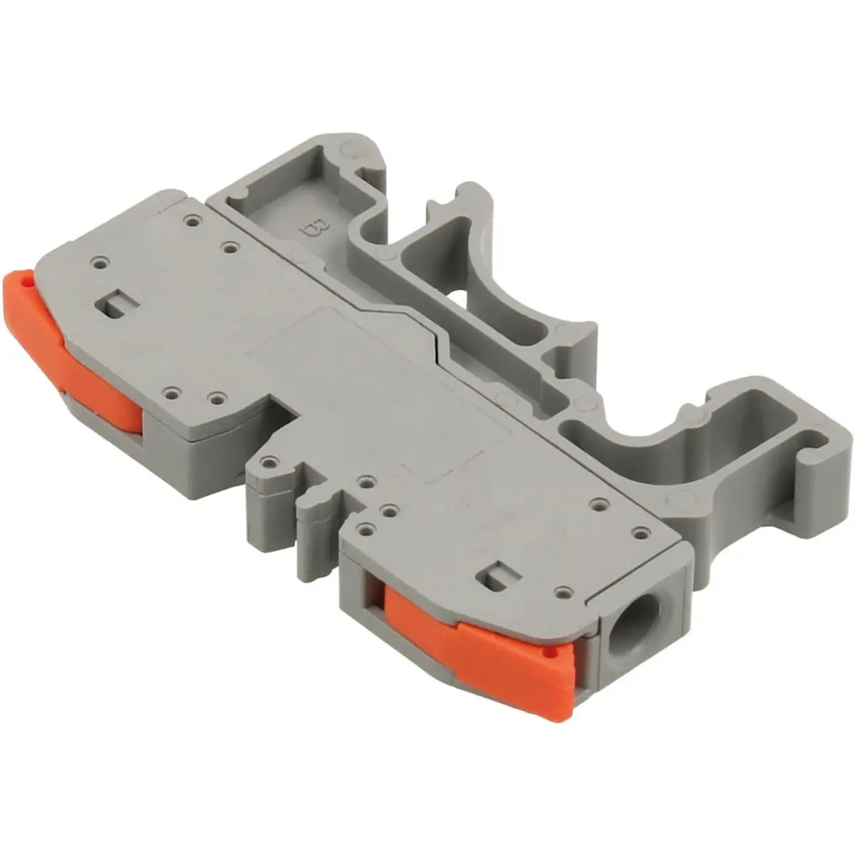 Este borne de ligação rápida para calha DIN oferece uma ligação de uma via com bloqueio por alavanca, ideal para ligações rápidas, seguras e empilhável. Compatível com fios unifilares de até 4 mm², suporta até 32 A e 450 V AC. Possui orifício central para pontes entre ligações, ligação equipotencial e sem parafuso, facilitando emendas de cabos, testes de alimentação e montagem em painéis elétricos.