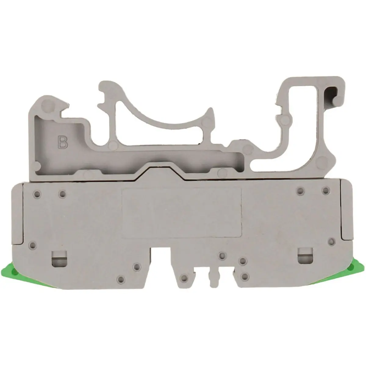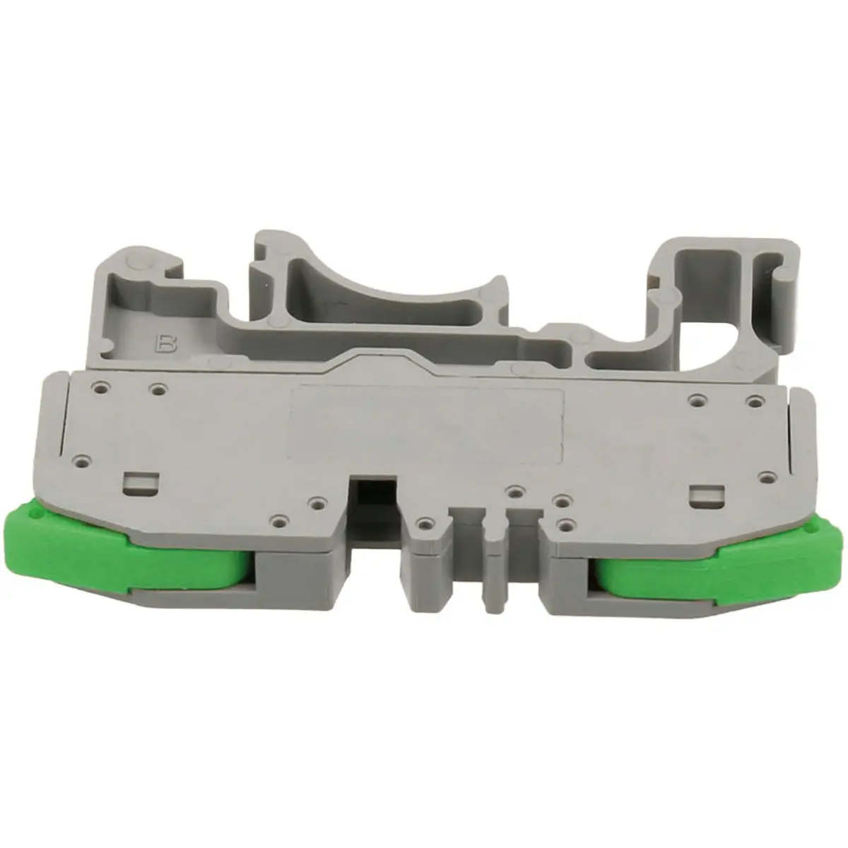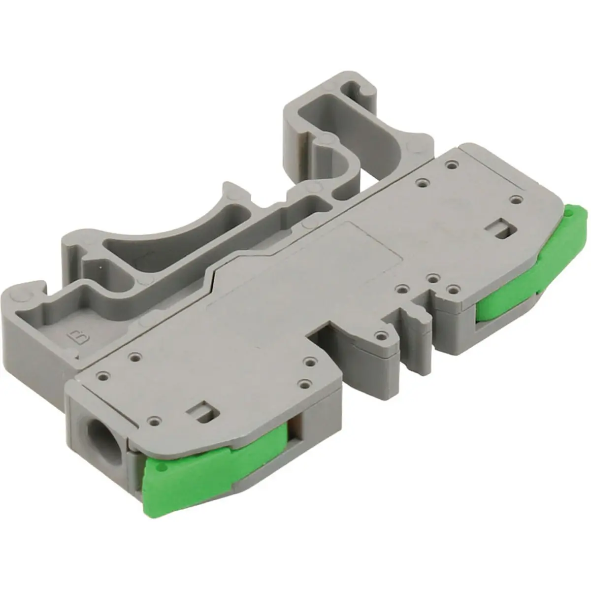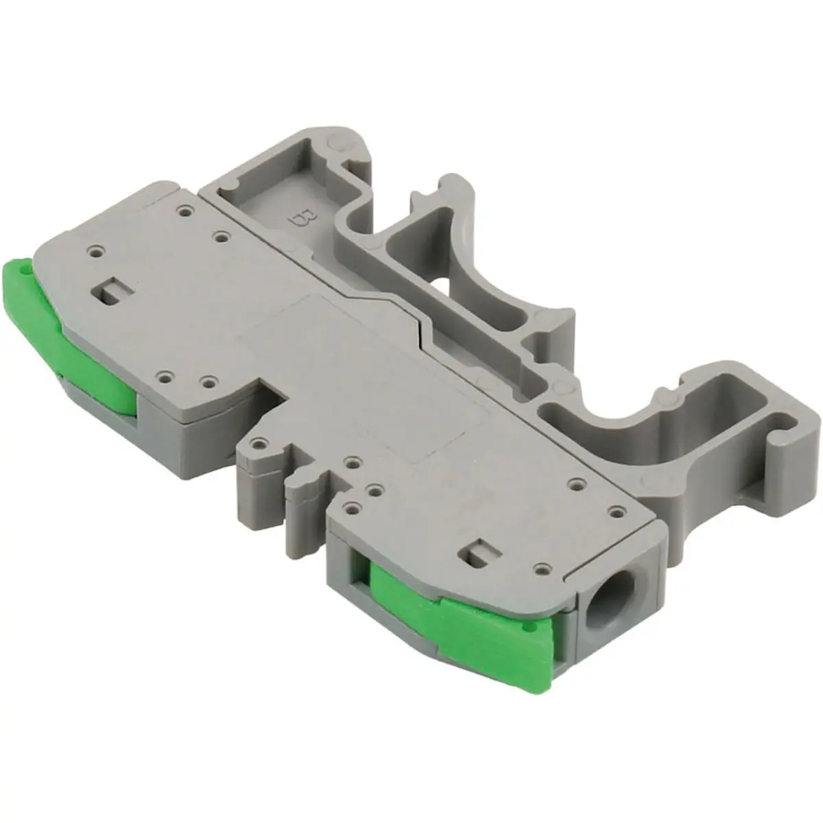 Terminal de ligação rápida para calha DIN, de uma via, com bloqueio por alavanca e ligação equipotencial. Ideal para emendas de cabos, com orifício central que facilita a ligação de pontes entre várias ligações ou para testes de alimentação. Compatível com fios unifilares até 4 mm², suportando corrente máxima de 32 A e tensão máxima de 450 V AC. O design compacto permite empilhamento e montagem sem parafusos, simplificando a integração em quadros elétricos. Compatível com montagem em calhas DIN, oferecendo conectividade segura, rápida e confiável em instalações elétricas.
