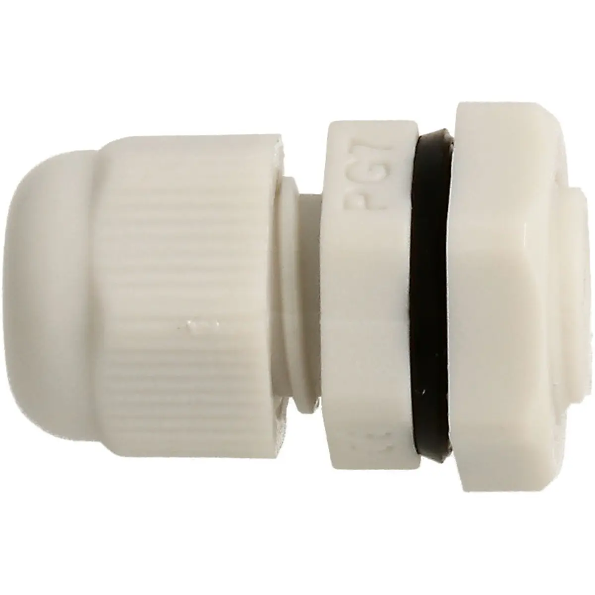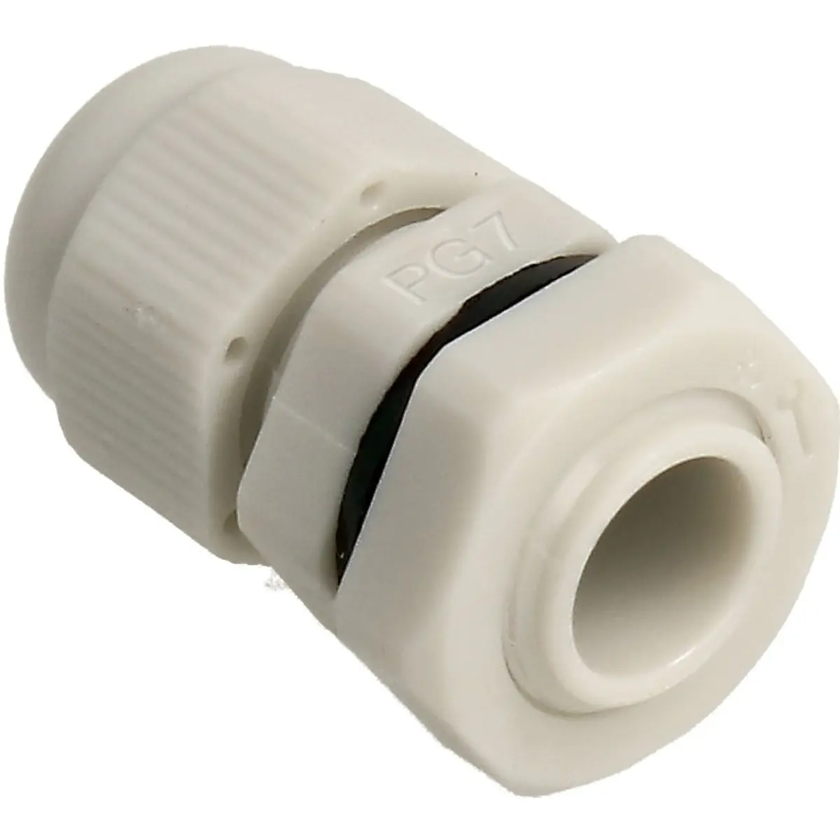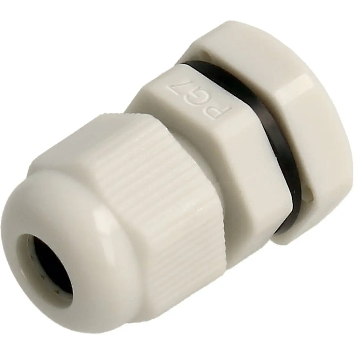 Glande de cabo com rosca PG07, IP68, em poliamida, para cabos 3,5-6 mm, com junta O-ring incluída e porca de aperto. Resiste a temperaturas de operação entre -35 °C e 105 °C, proporcionando vedação hermética em interiores e exteriores contra água e poeira. Ideal para instalações industriais ou elétricas que exigem proteção robusta e fixação segura, mantendo o cabo protegido e a vedação estável.