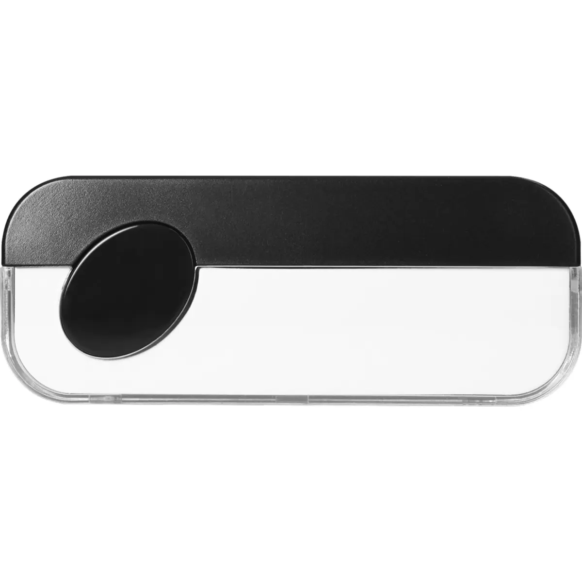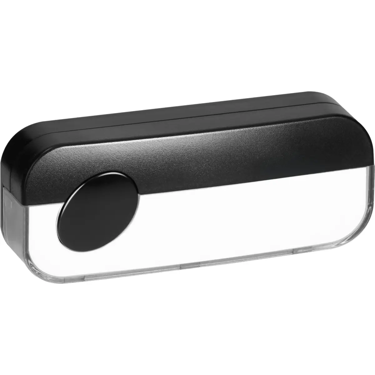 Botão de campainha concebido para instalações com fio, adequado para montagem à superfície. Inclui espaço para cartão de identificação e possui um corpo em plástico resistente. A proteção IP44 garante funcionamento fiável sob chuva e em diversas condições climatéricas.