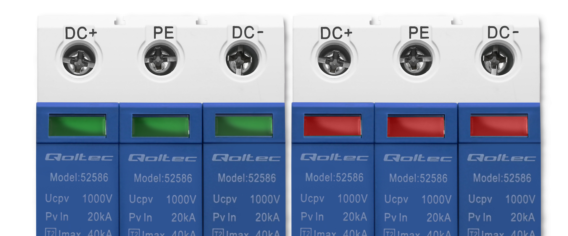 Os limitadores de sobretensões DC Qoltec estão equipados com sensores de alta tensão e comutador DC de 3 níveis. A construção modular, composta por uma base fixa e módulos de proteção encaixáveis, permite uma instalação simples e manutenção rápida. É especialmente indicado para sistemas fotovoltaicos, garantindo proteção contínua e eficaz.