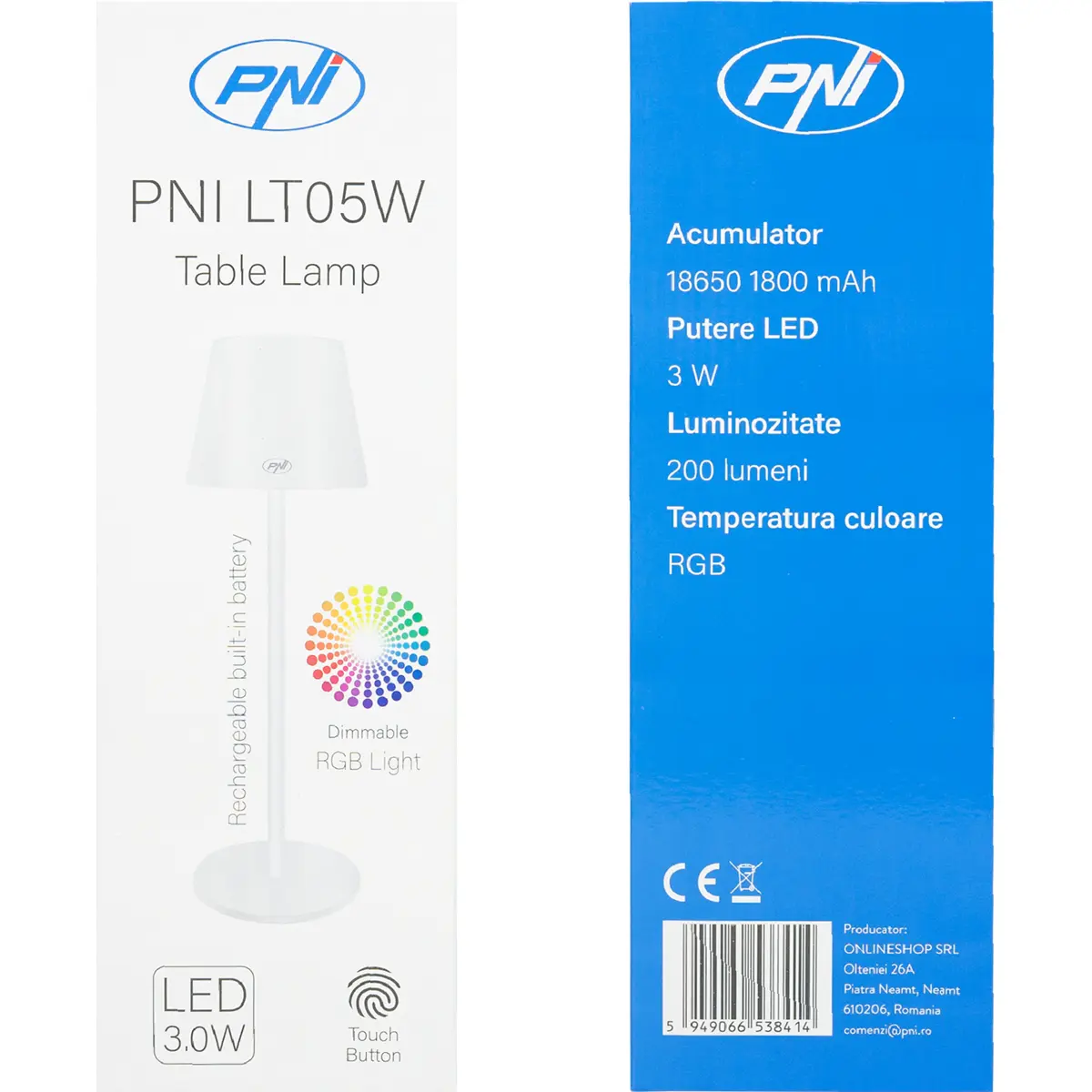 PNI LT05W - Candeeiro de mesa portátil RGB+W 3W 200lm - recarregável 1800mAh - IP44 - branco