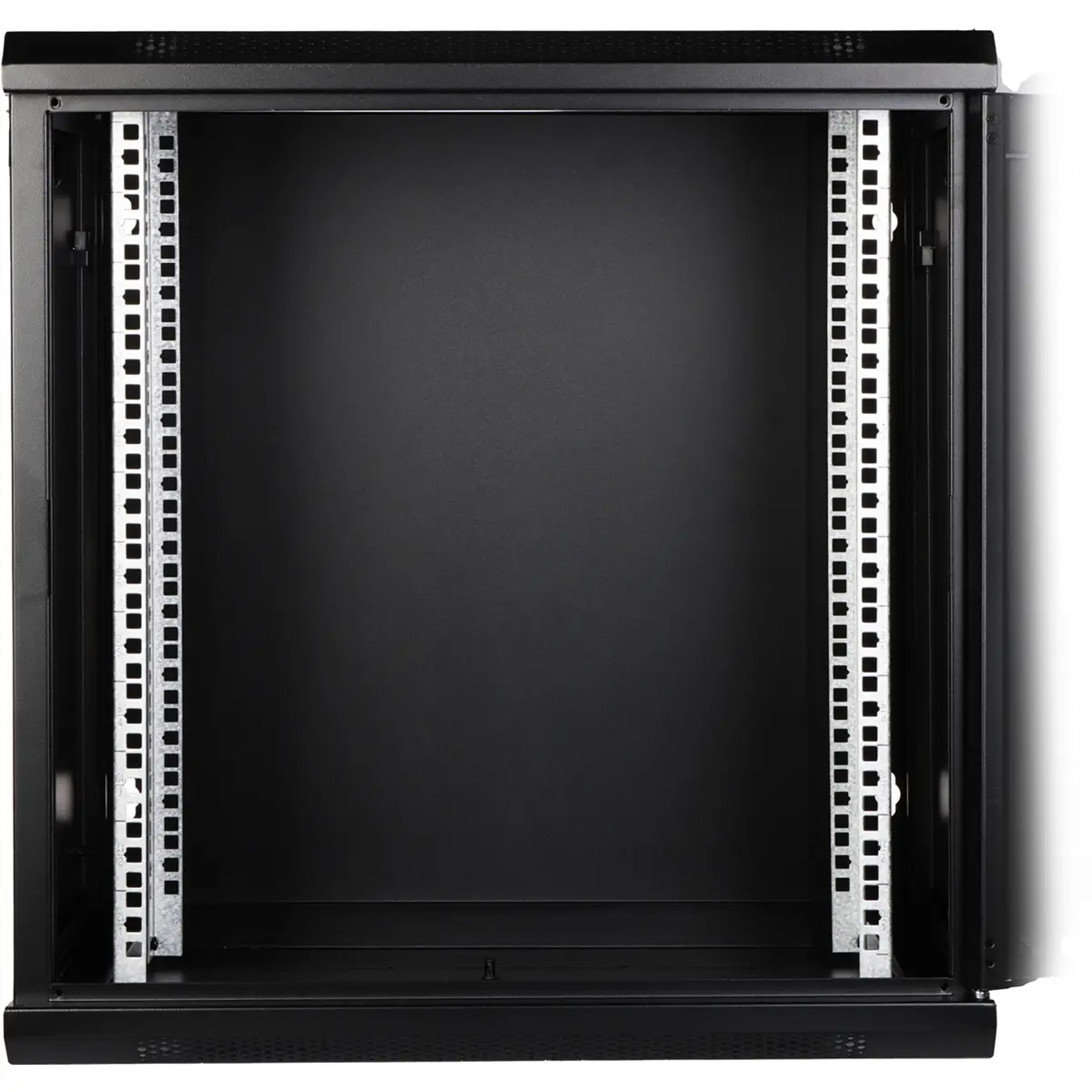 O armário rack EPRADO R19-12U/450 é uma solução robusta e prática para alojamento de equipamentos de rede, telecomunicações e sistemas de videovigilância em ambientes profissionais ou domésticos. Com capacidade de 12U e profundidade de 450 mm, oferece espaço suficiente para instalação de switches, patch panels, gravadores NVR e outros dispositivos standard de 19". A estrutura metálica resistente garante proteção física dos equipamentos, enquanto o formato de montagem na parede permite otimizar o espaço disponível.