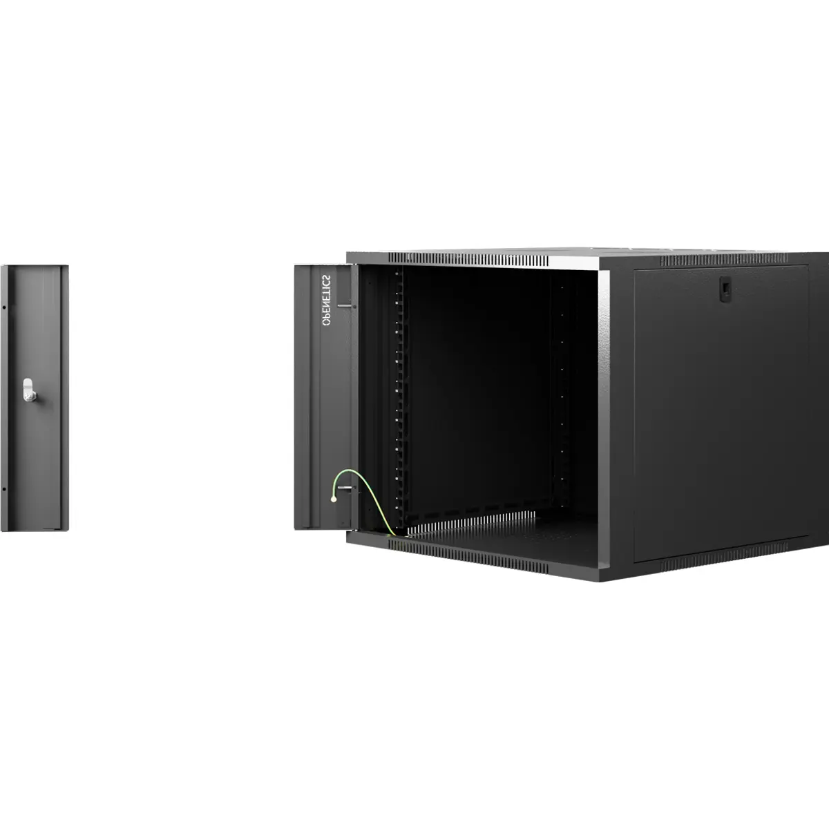 Este armário rack 19" de parede foi concebido para alojar e proteger equipamentos de rede e telecomunicações em instalações profissionais ou residenciais. Com estrutura metálica robusta e formato compacto, permite montagem na parede, sendo ideal para espaços técnicos reduzidos como escritórios, salas IT, lojas ou pequenas infraestruturas de videovigilância. Este modelo é fornecido pré-montado, facilitando a instalação e reduzindo o tempo de implementação. A porta frontal em vidro temperado com abertura ampla permite acesso rápido ao equipamento, mantendo simultaneamente proteção física e visibilidade do interior.