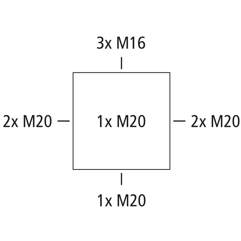 - Entradas knock-out: M16/M20 (1 traseira, 8 laterais), faixa de vedação 4–16 mm