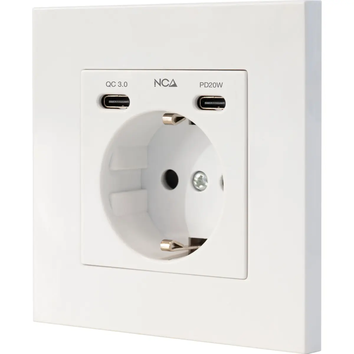 Tomada de embutir universal Schuko fêmea c/ 2x USB-C 3.4A PD 20W - Branco Tomada de embutir universal Schuko fêmea c/ 2x USB-C 3.4A PD 20W - Branco Tomada de embutir universal Schuko fêmea c/ 2x USB-C 3.4A PD 20W - Branco