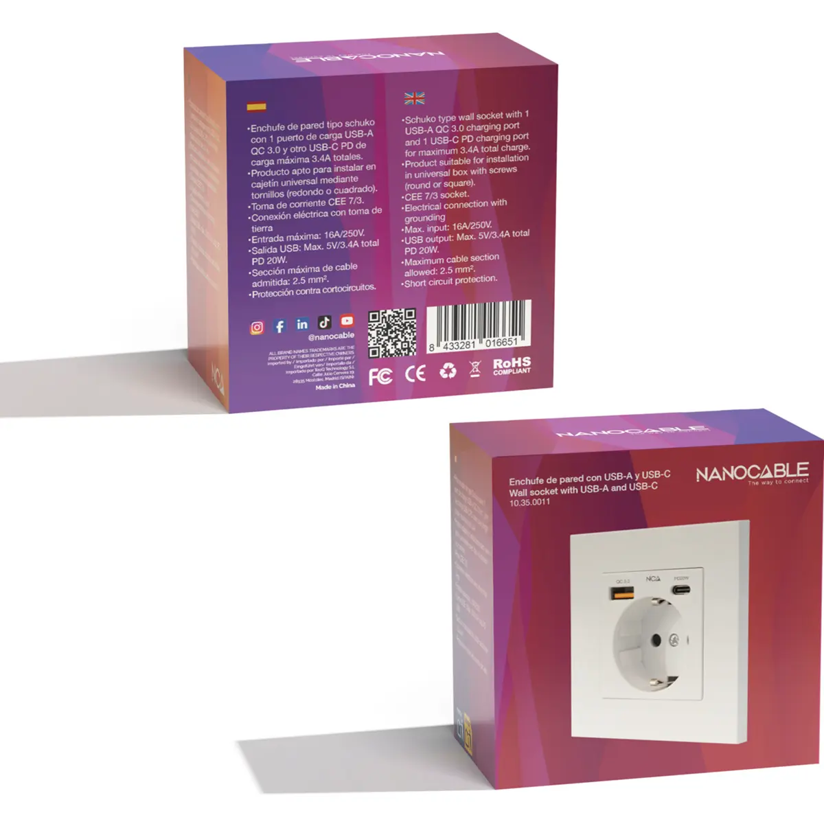 Concebida para integração em instalações domésticas ou de escritório, é a opção para quem procura organização, conveniência e potência de carregamento diretamente na parede, eliminando a necessidade de múltiplos carregadores ou adaptadores. Com funcionalidade Power Delivery (PD) e Quick Charge (QC), garante carregamento rápido e eficiente, adaptando-se automaticamente à potência adequada para cada dispositivo.