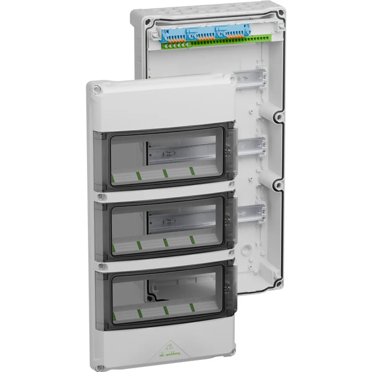 Com uma estrutura de 3 filas e capacidade para 36 módulos, este quadro destaca-se pela integração de elementos de ventilação Air® que previnem eficazmente a formação de condensação, mantendo o grau de proteção IP65.