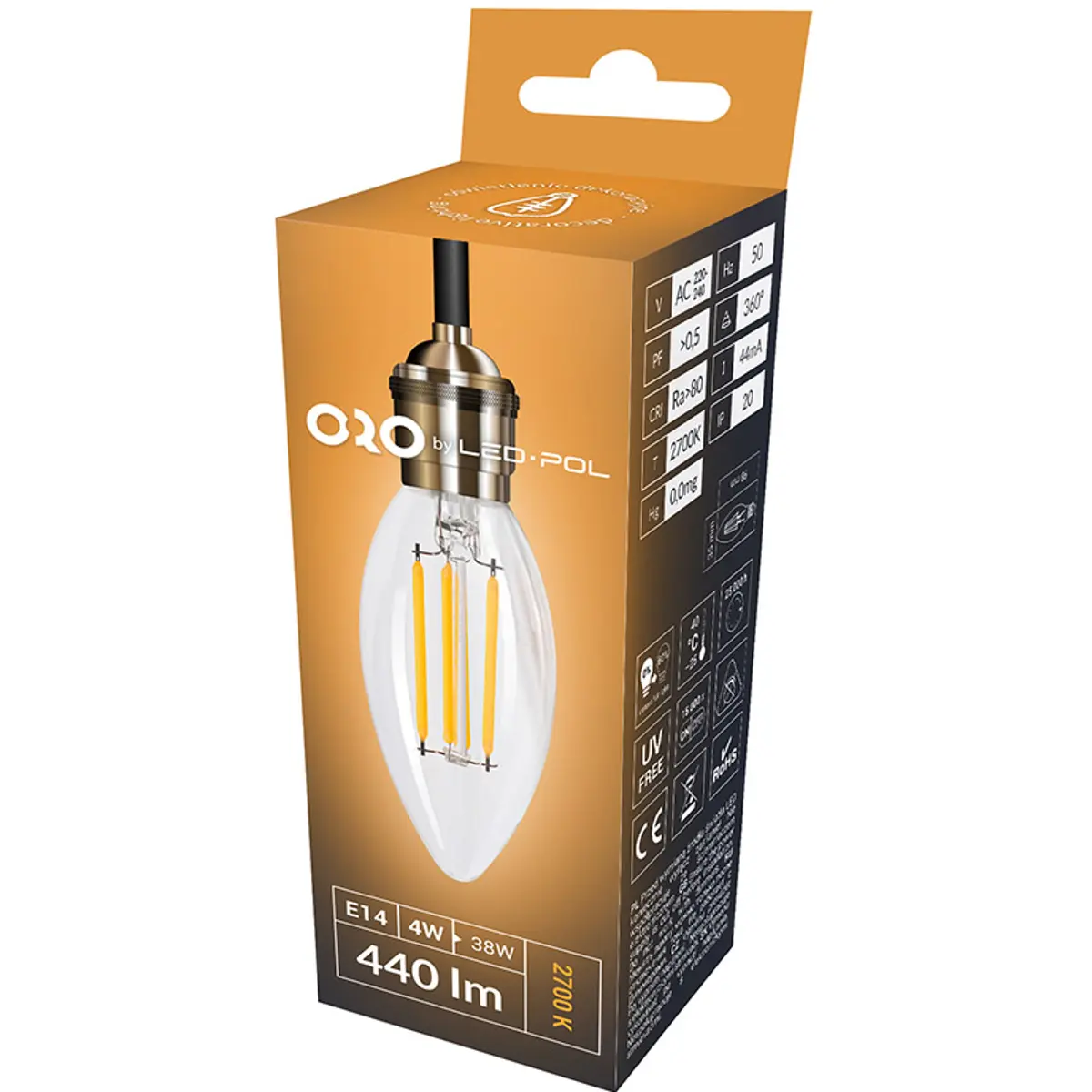 LED POL ORO-E14-C35-FL-CLARO-4W-WW - Lâmpada LED tipo filamento E14 C35 230V 4W 3000K (branco quente) 440lm
