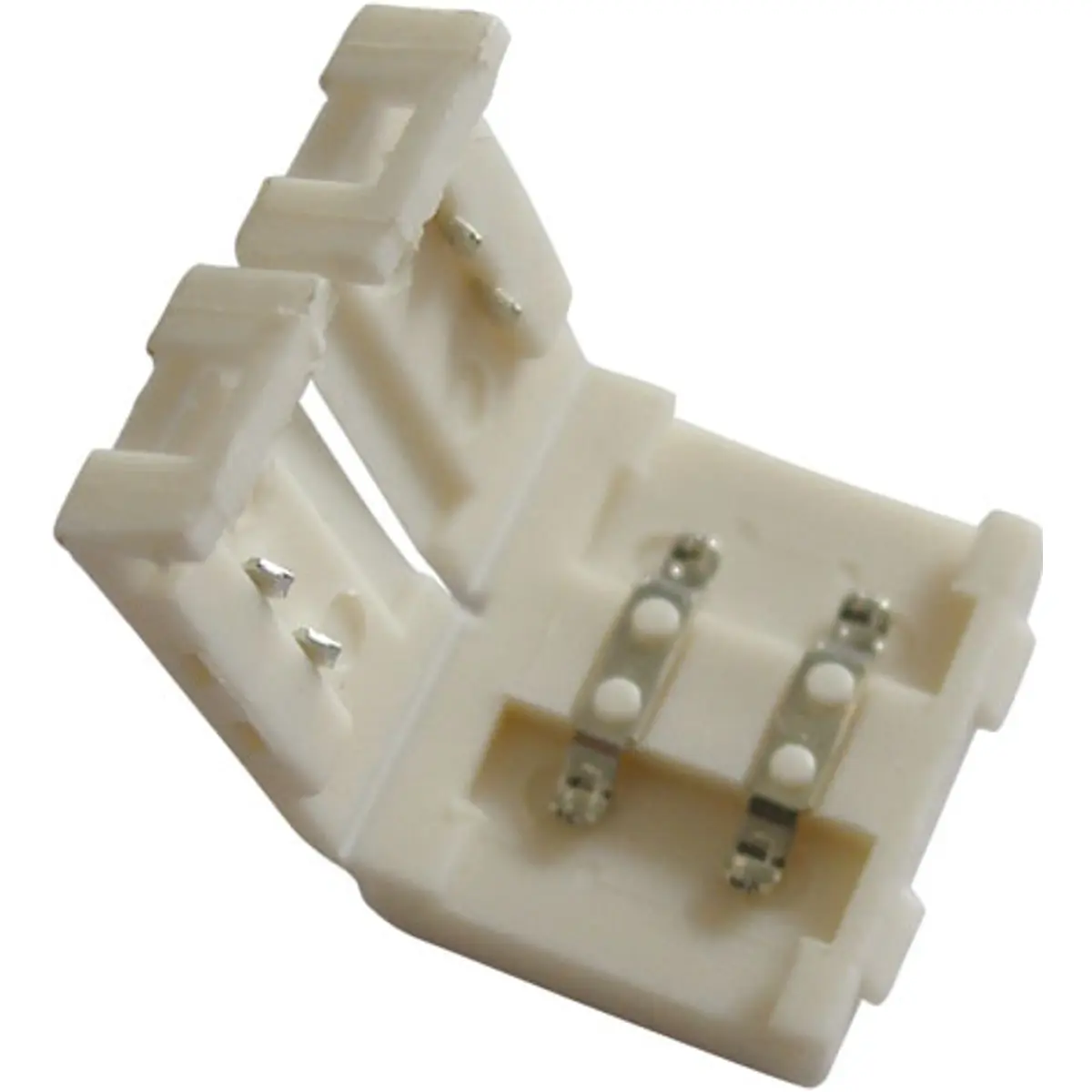 Conector de união para fitas de LED com 10 mm de largura, compatível com os modelos SMD5050 e SMD5630. Ideal para fazer a ligação entre tiras de LED, proporcionando uma transição estável entre segmentos de fita e facilitando a montagem em projetos de iluminação LED.