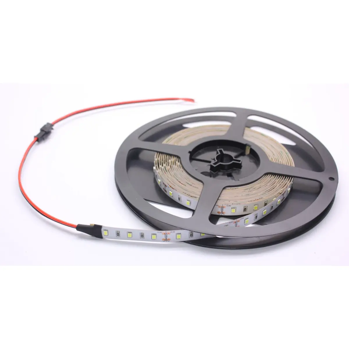 Fita de LEDs de 12V, 5 m, 60W, com 6750 lm e LEDs SMD2835. Cor 6000K (branco frio) e ângulo de abertura 120º, IP20, indicada para interiores. Ideal para iluminação decorativa, realce de ambientes e iluminação indireta, com instalação simples em conjunto com um driver de 12V.