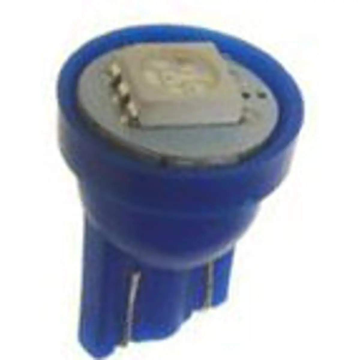 Lâmpada LED azul em formato T10, funciona a 12V com consumo de 0.5W. Proporciona 27.5lm de fluxo luminoso e ângulo de abertura de 120º, com LED 1SMD5050 e base T10. Ideal para substituição de lâmpadas de baixa potência, oferecendo eficiência energética, durabilidade e instalação simples.