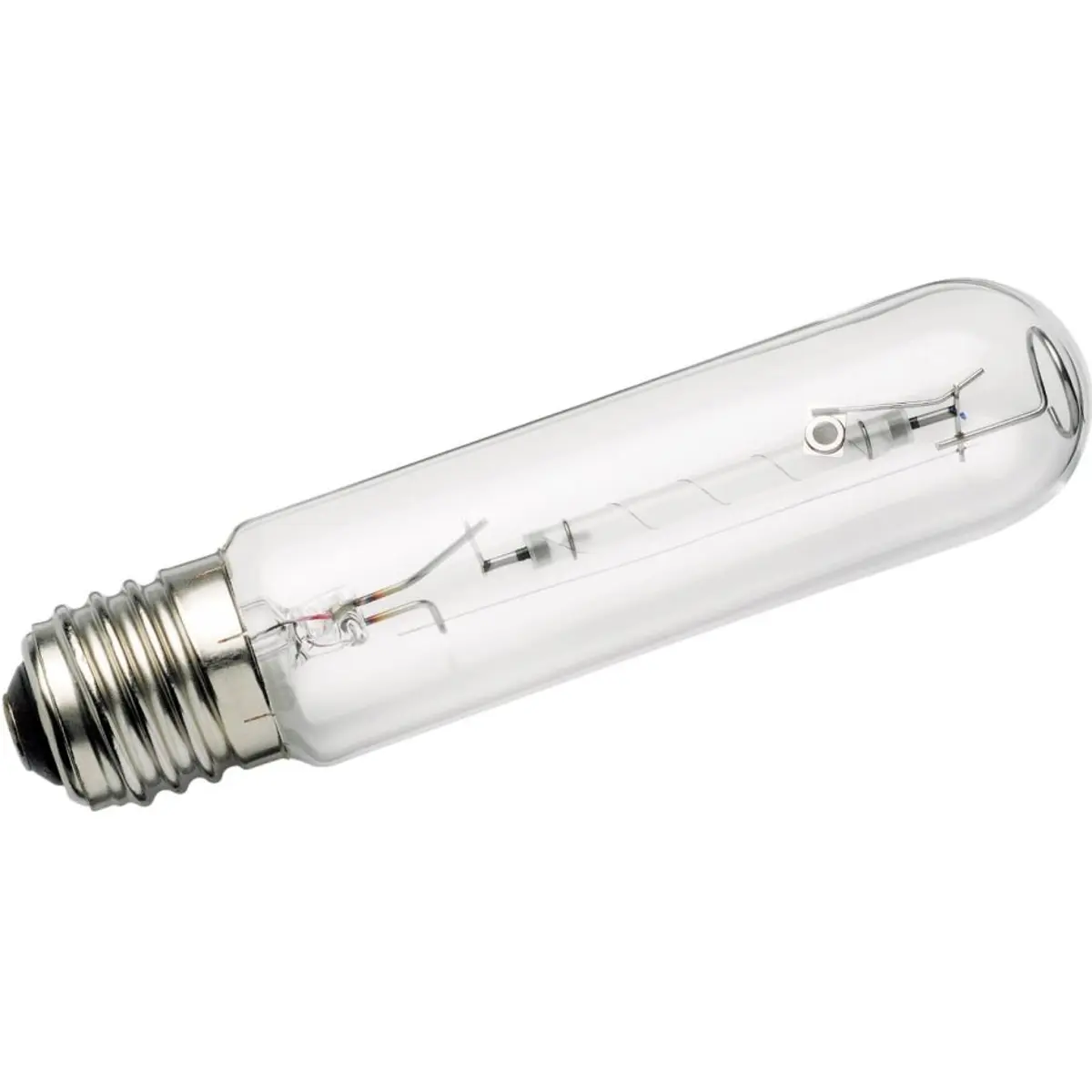 A Lâmpada de descarga E40 oferece 100 V de tensão, 150 W de potência, fluxo luminoso de 17000 lm e temperatura da cor de 2000 K. Com dimensões de Ø91x226 mm, é adequada para iluminação de alta intensidade em aplicações industriais que requerem tonalidade quente e rendimento estável.