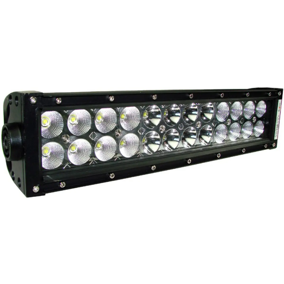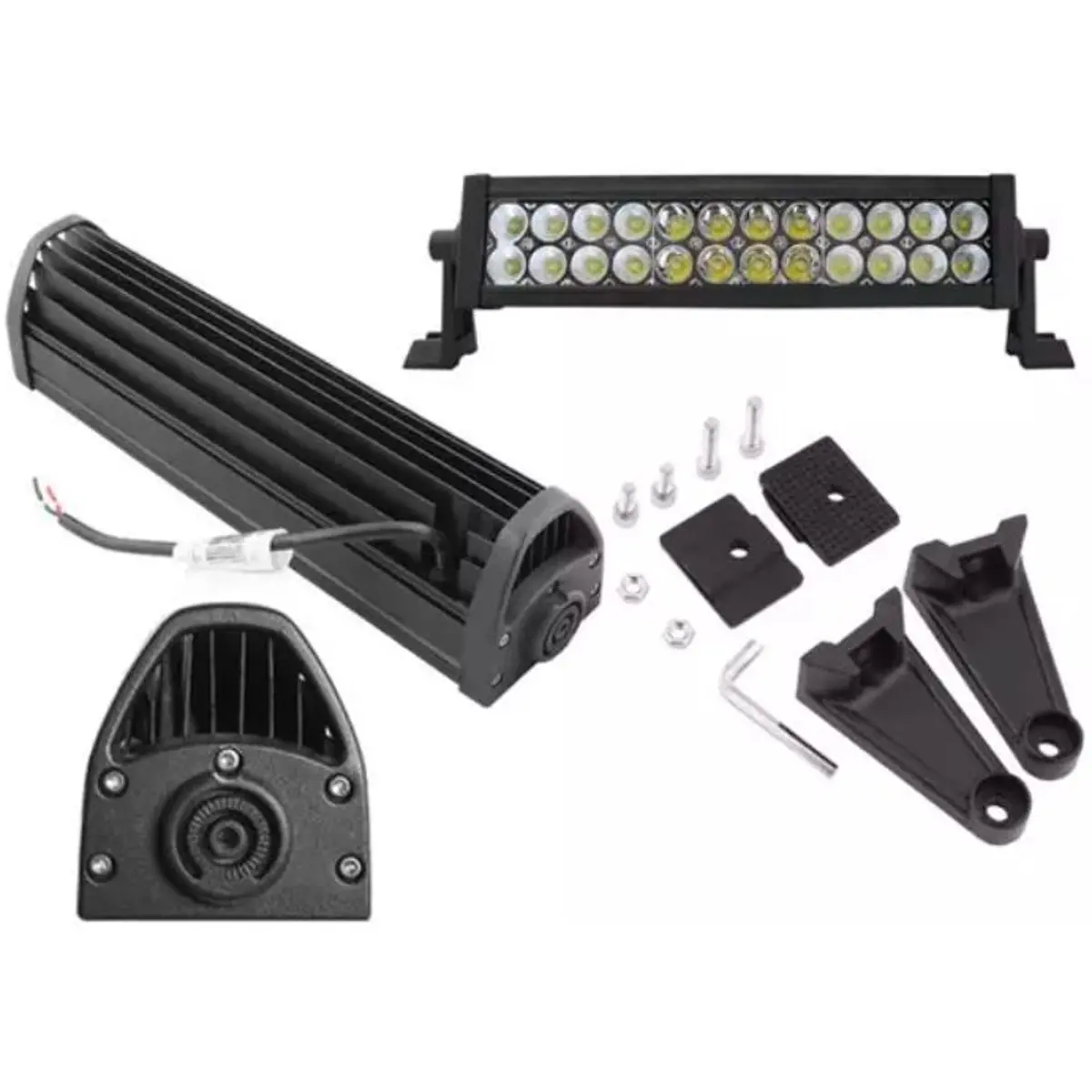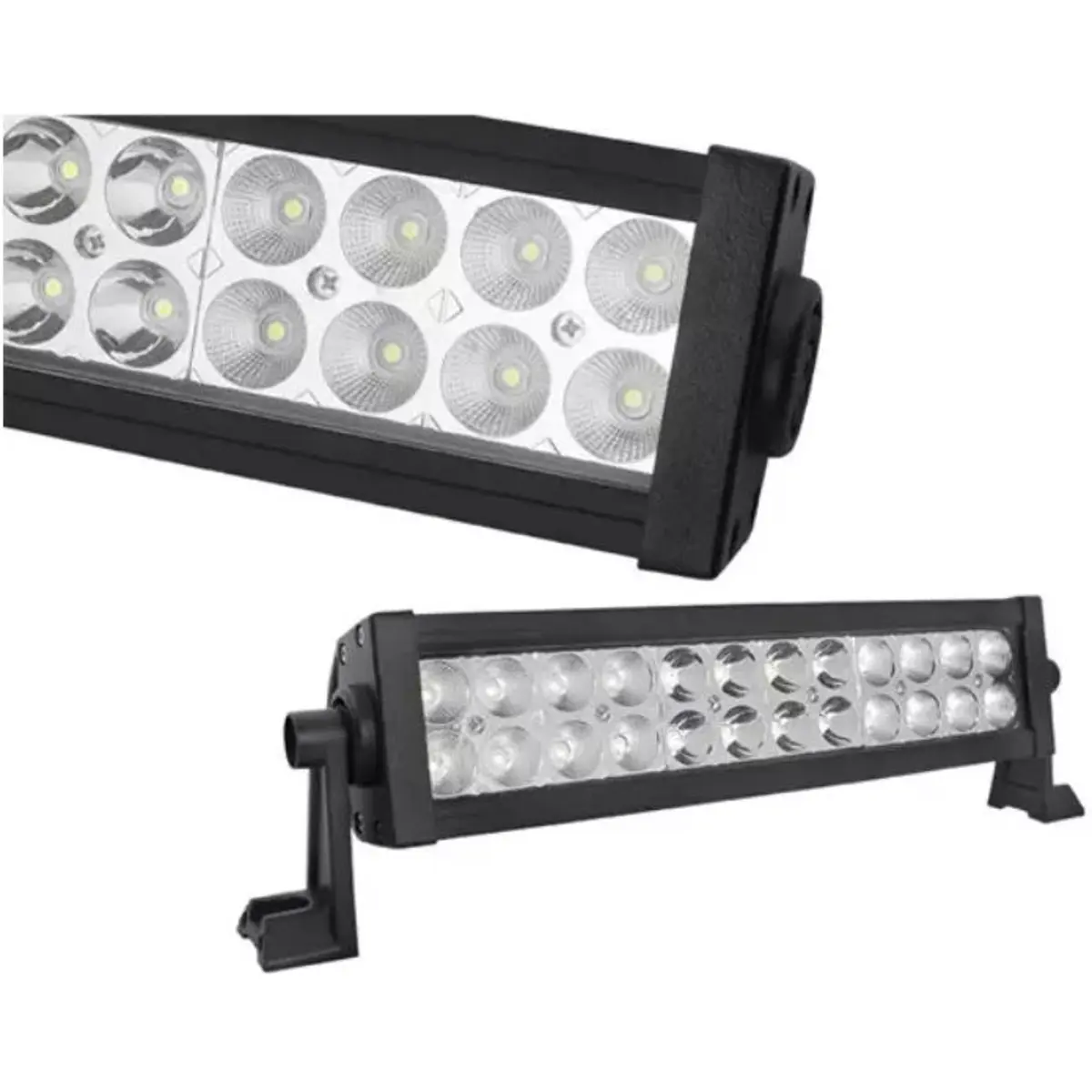 Iluminação LED de alto rendimento para uso off-road, com 72W de potência e funcionamento entre 10 e 30V. Fornece 2600 lúmens de fluxo luminoso a 6500K, com CRI >73Ra para melhor fidelidade de cores. Estrutura em alumínio resistente e classificação IP68, proteção contra água e poeira. Ângulo de emissão de 30º e dimensões de 345 x 83 x 80 mm, adequada para veículos, barcos e equipamentos expostos, com instalação versátil e desempenho estável em condições extremas.