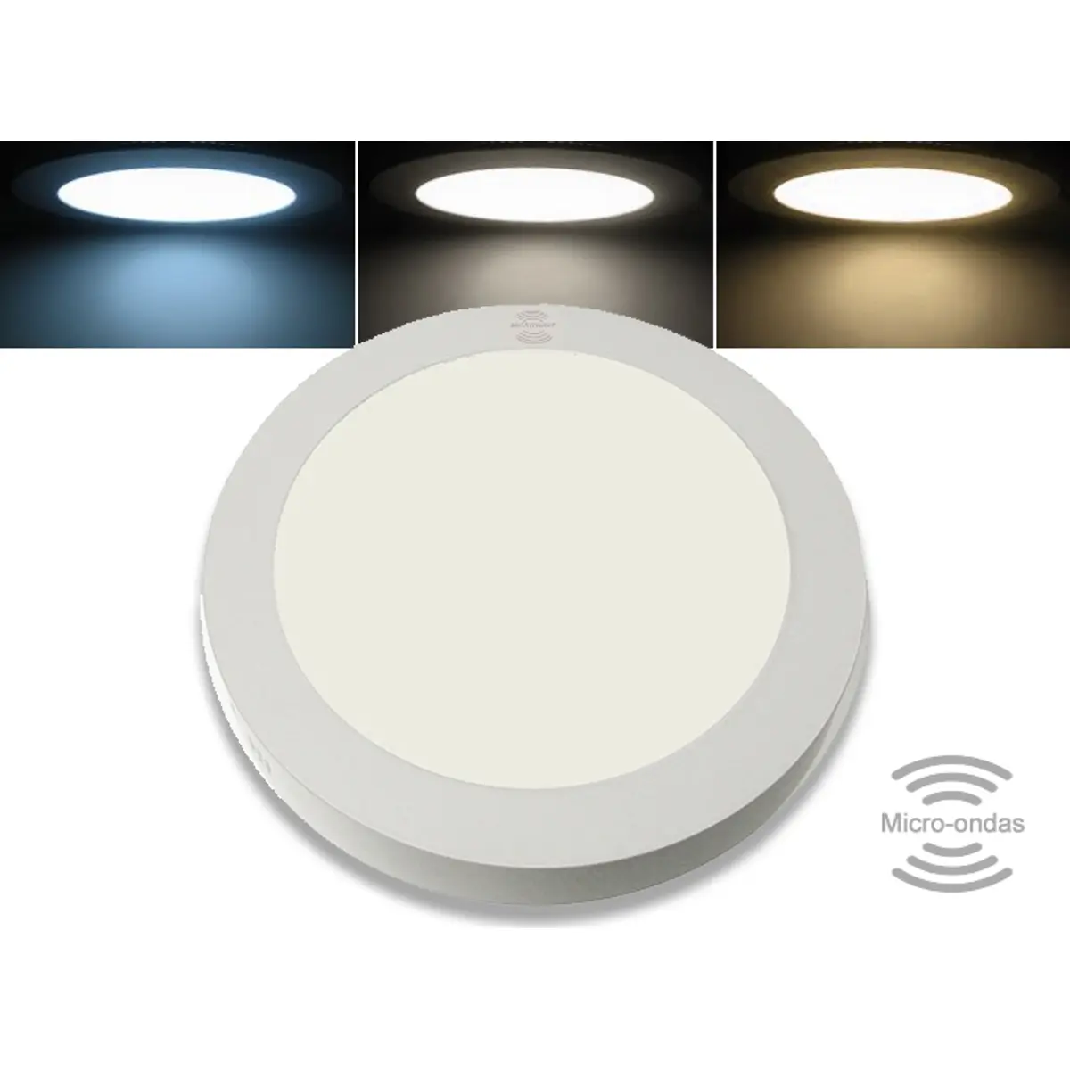 Painel LED redondo de superficie 4-em-1 3000/4000/6000K c/ sensor micro-ondas 230V 18W 1530lm