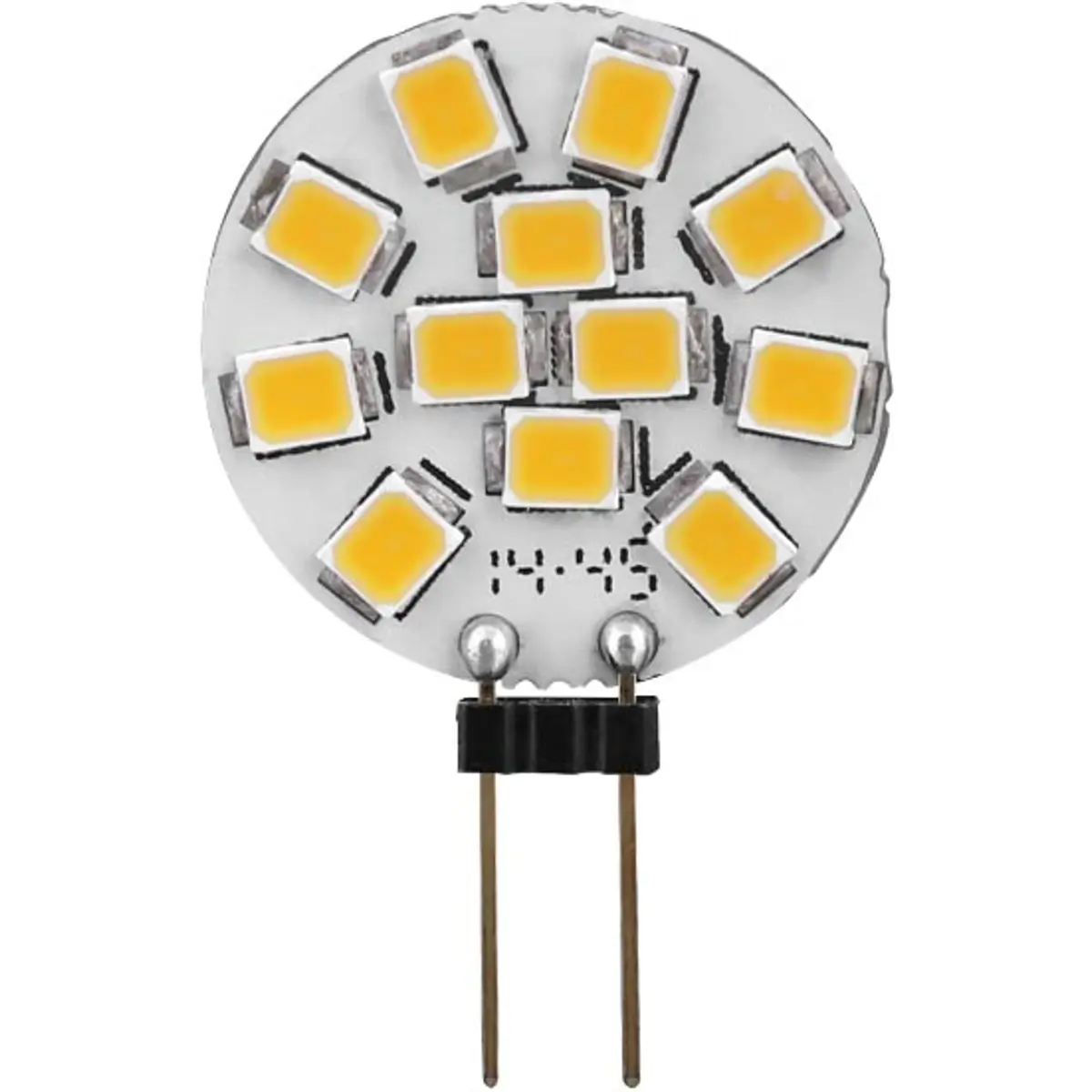 Lâmpada LED com base G4 para iluminação de baixa tensão (12V), potência 1.5W e temperatura de cor de 3000K (branco quente), oferecendo 140lm de fluxo luminoso. Não dimável, com ângulo de abertura de 180° e CRI ≥80. Dimensões Ø20 x 30mm, classe energética F. Ideal para iluminação discreta em luminárias compactas e aplicações de baixa tensão com alimentação de 12V.