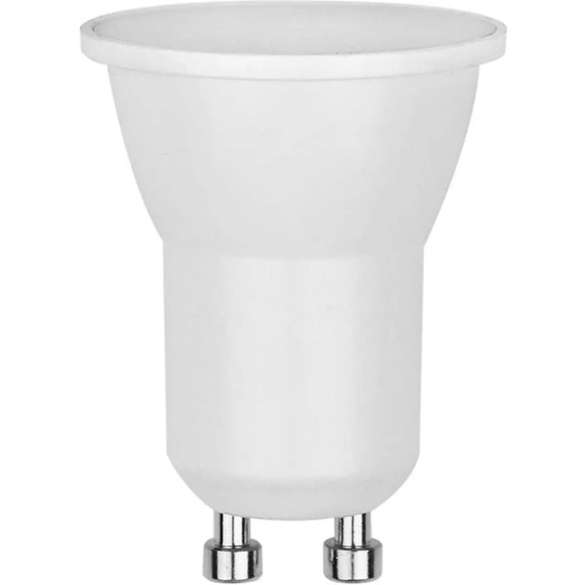 Lâmpada LED com base GU10 para iluminação interior, operando a 230V e consumindo apenas 1,8W. Proporciona 140 lúmen de fluxo luminoso a 6500K (branco frio) com ângulo de abertura de 120°. Não dimável, CRI ≥ 80Ra, proteção IP20 e temperatura de funcionamento de -15 a 40 °C. Possui vidro de proteção e dimensões compactas Ø35 x 46 mm, adequada para aplicações residenciais ou comerciais que exigem eficiência energética.