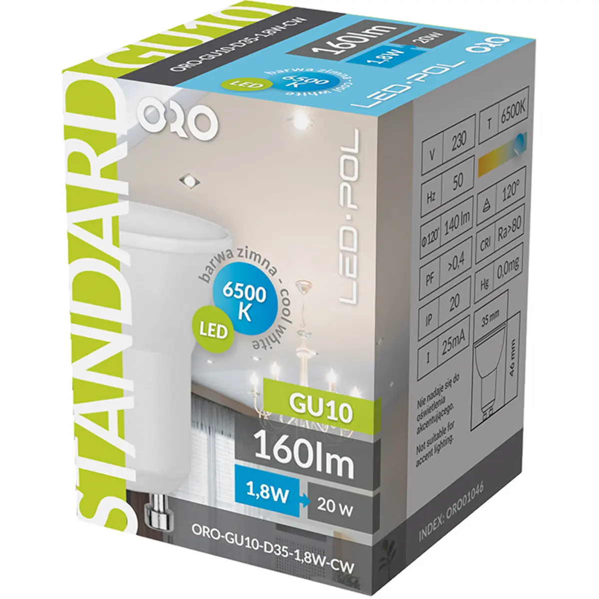 LED POL ORO-GU10-D35-1,8W-CW - Lâmpada GU10 LED Ø35mm 230V 1.8W 6500K 140lm