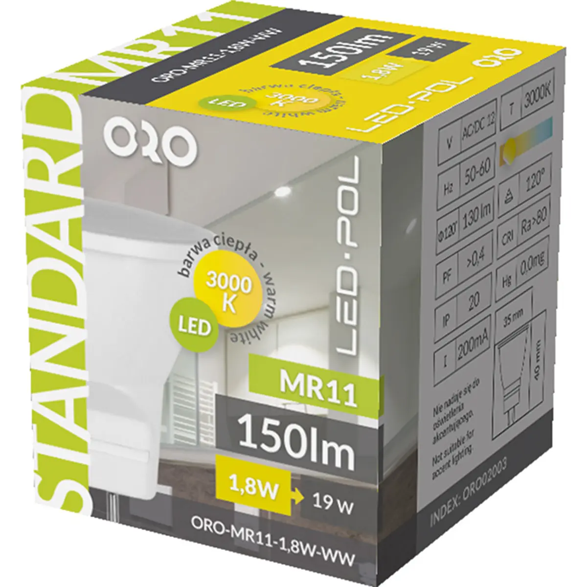 LED POL ORO-MR11-1,8W-WW - Lâmpada MR11 GU5.3 LED Ø35mm 12V 1.8W 3000K 150lm