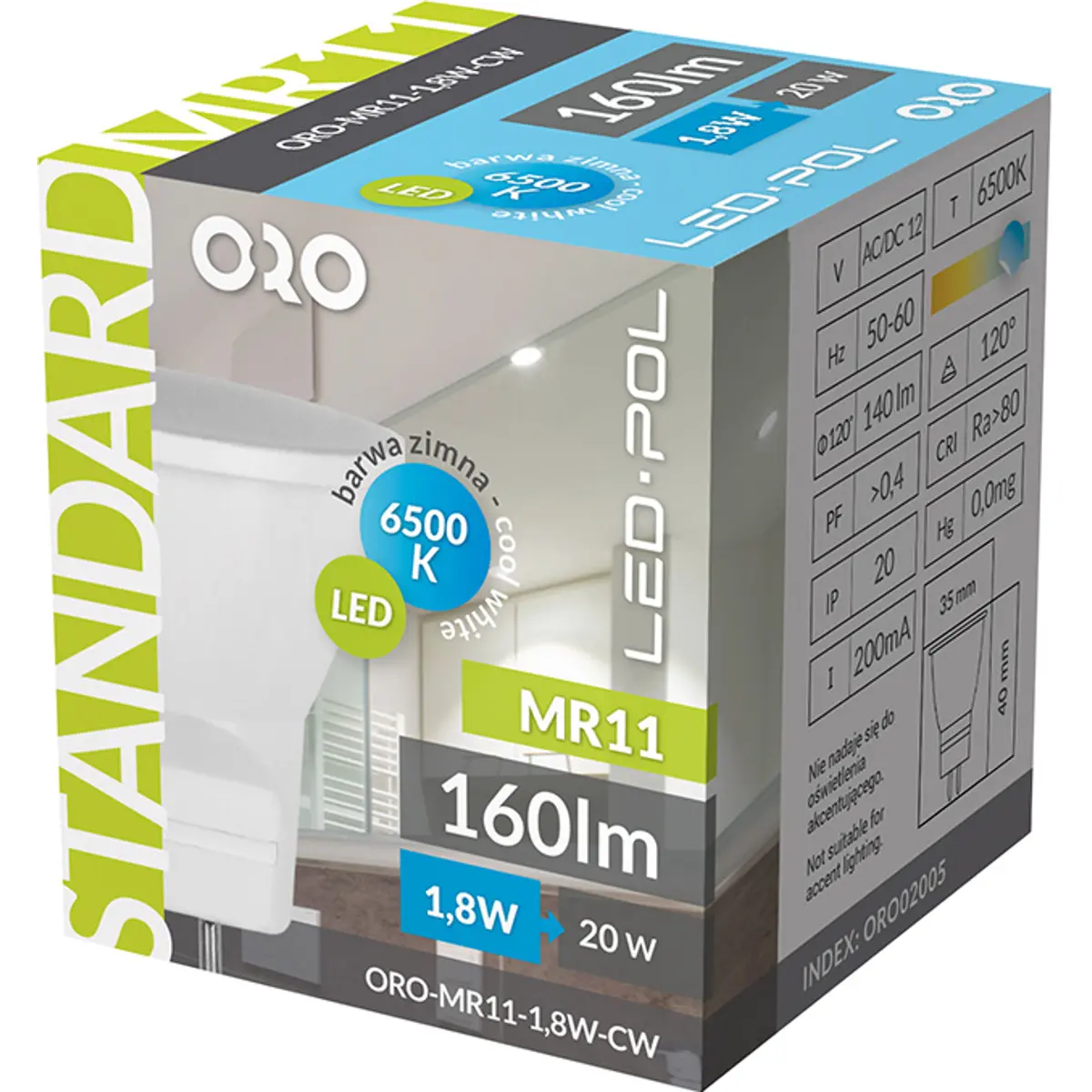 LED POL ORO-MR11-1,8W-CW - Lâmpada MR11 GU5.3 LED Ø35mm 12V 1.8W 6500K 150lm