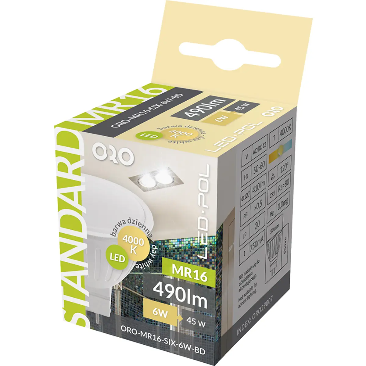 LED POL ORO-MR16-SIX-6W-BD - Lâmpada MR16 GU5.3 LED 12V 6W 4000K 410lm