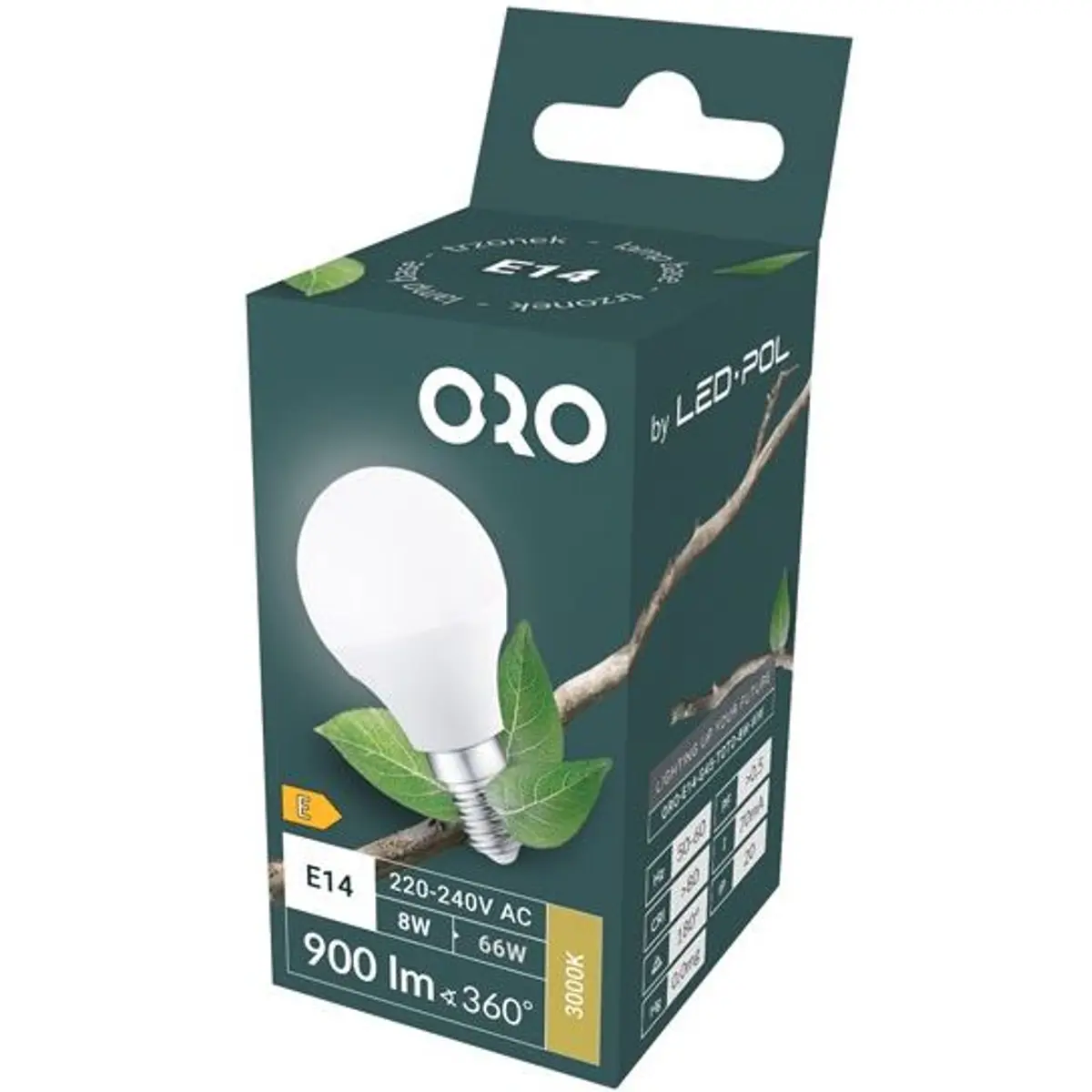 LED POL ORO-E14-G45-TOTO-8W-WW - Lâmpada LED E14 G45 230V 8W 3000K (branco quente) 900lm