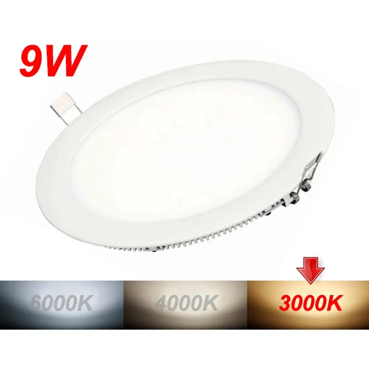 Aplique LED de embutir com driver incluído, alimentado a 230 V AC / 50 Hz, com potência de 9 W e fluxo luminoso de 750 lm. A temperatura de cor é 3000 K (branco quente) e o CRI é superior a 70 Ra. O ângulo de abertura é de 150°, com 45 LEDs SMD2835. Versão LGP sem pontos de fuga para iluminação uniforme. Dimensões de instalação Ø130 mm e exteriores Ø150 x 11 mm. Ideal para iluminação de interiores, oferecendo luz eficiente e agradável para tetos.