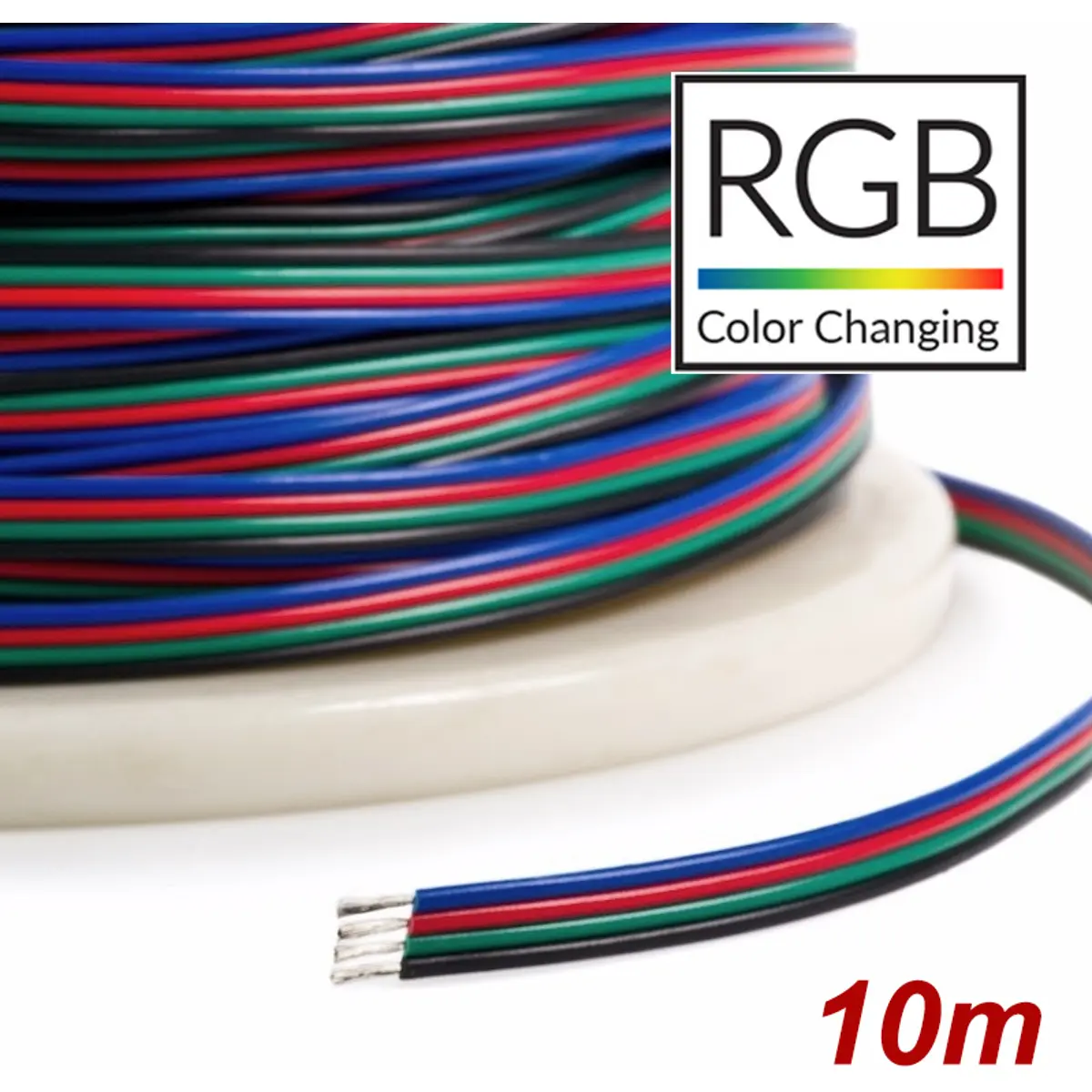 Este cabo espalmado de quatro condutores, com secção de 0,14 mm² por condutor, tem 10 metros de comprimento e suporta até 8 A de corrente. Destina-se a ligações de fitas RGB (LED), fornecendo uma solução simples e organizada para distribuir alimentação e sinal entre componentes RGB em instalações de iluminação, quer residenciais quer profissionais, de modo estável e eficaz.