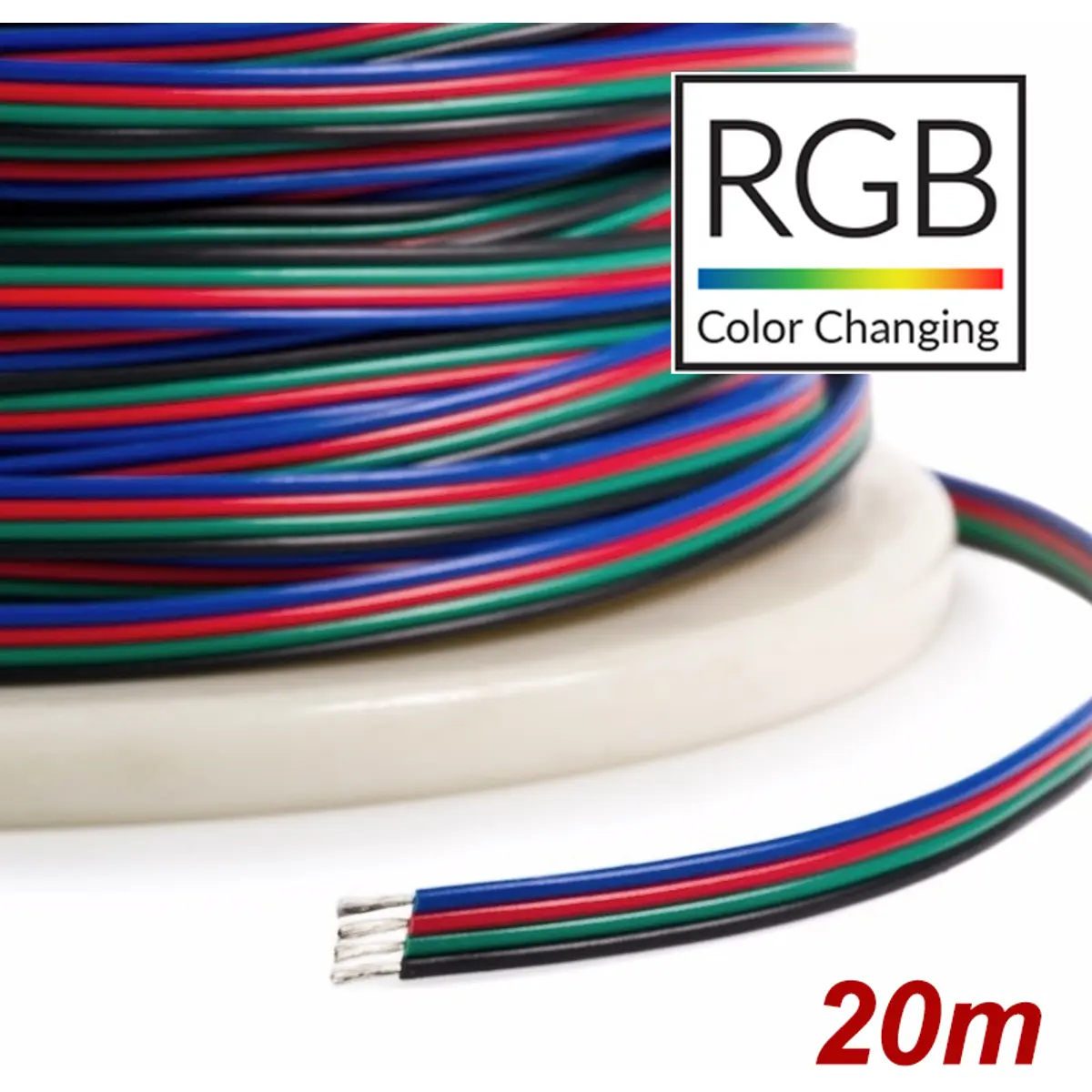 Este cabo espalmado de 4 condutores, com seção de 0,14 mm² por condutor, é indicado para alimentação de fitas RGB. Possui comprimento de 20 m em rolo, suportando até 8 A de corrente máxima. Ideal para ligações estáveis entre fontes de alimentação e as fitas, oferecendo boa flexibilidade, isolamento adequado e montagem simples em canaletas ou suportes. Compatível com redes de iluminação LED RGB, facilita ligações seguras e organizadas em projetos residenciais ou comerciais, assegurando desempenho estável e reduções de perdas elétricas.