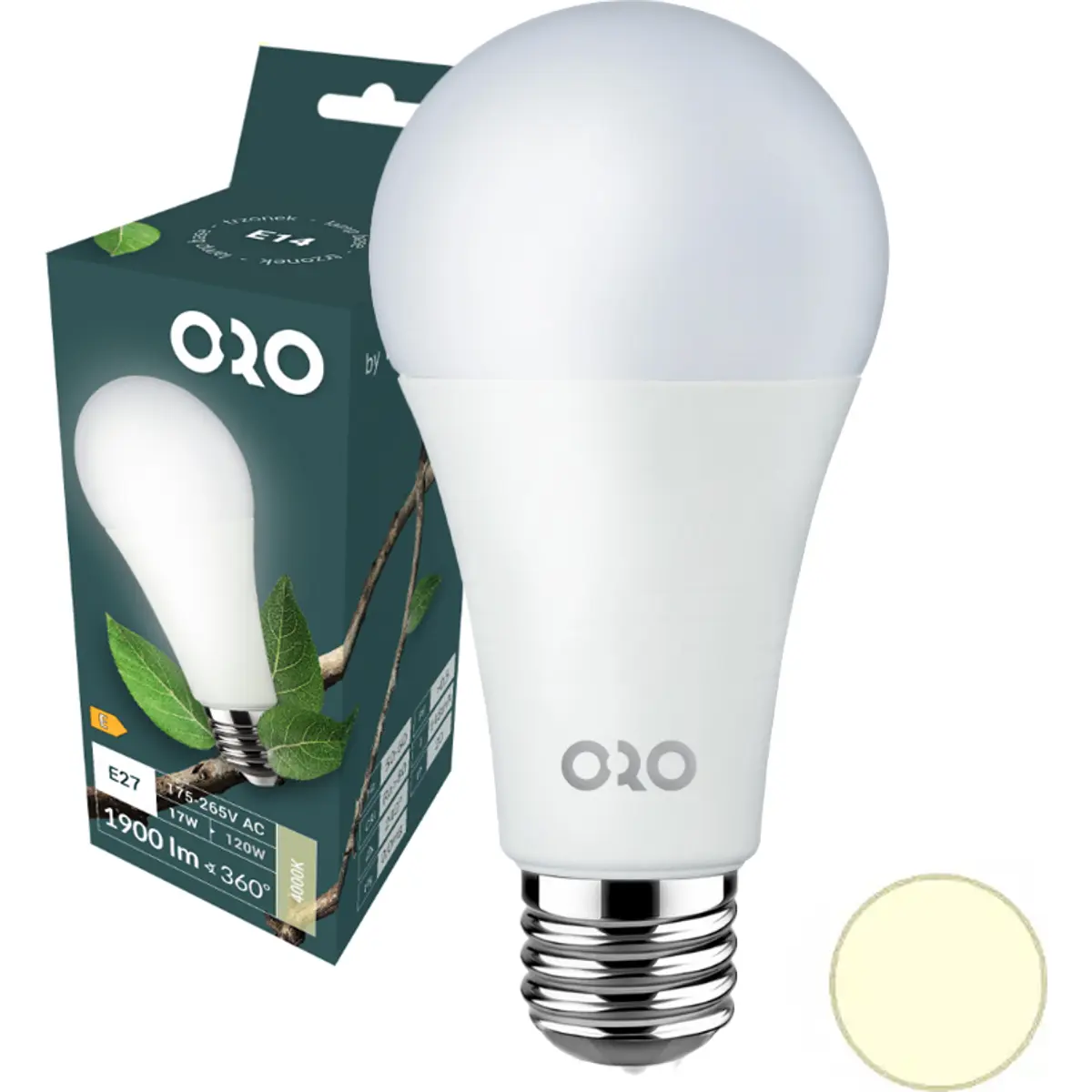 LED POL ORO-ATOS-E27-A65-17W-DW - Lâmpada E27 LED 230V 17W 4000K (branco neutro) 1900lm