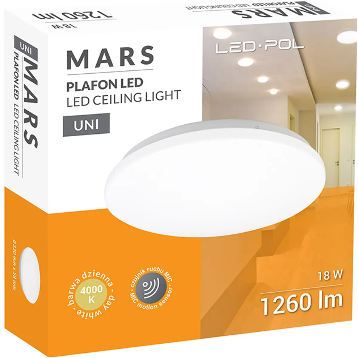 LED POL ORO-MARS-18W-DW-MIC - Plafon LED 230VAC 18W 1260lm 4000K c/ sensor microondas + crepuscular Ø330x58mm
