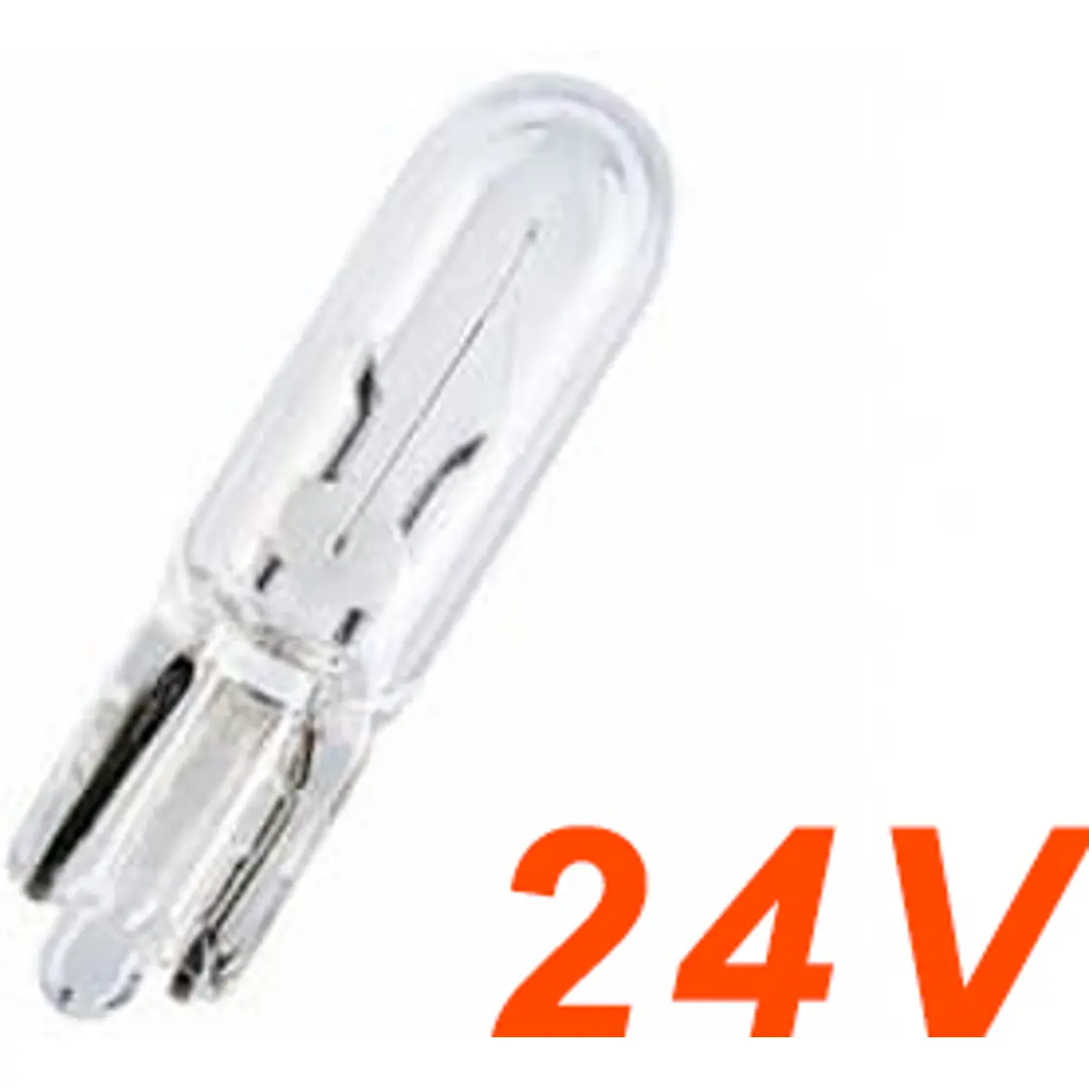 Lâmpada automóvel T5 com casquilho W2x4,6d, 24V e 1.2W, adequada para camiões. Cor transparente, conteúdo do conjunto: 1 lâmpada. Série LLB. Ideal para substituição simples em sistemas de iluminação de veículos, oferecendo baixo consumo, iluminação estável e montagem direta, sem referência a marcas.