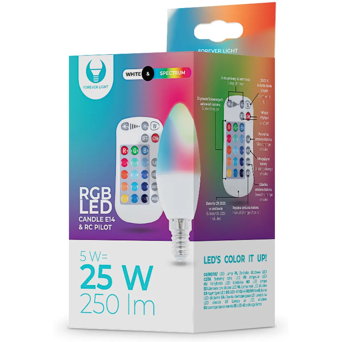 Forever Light - Lâmpada LED E14 5W RGB+W (branco quente) 250lm - c/ comando