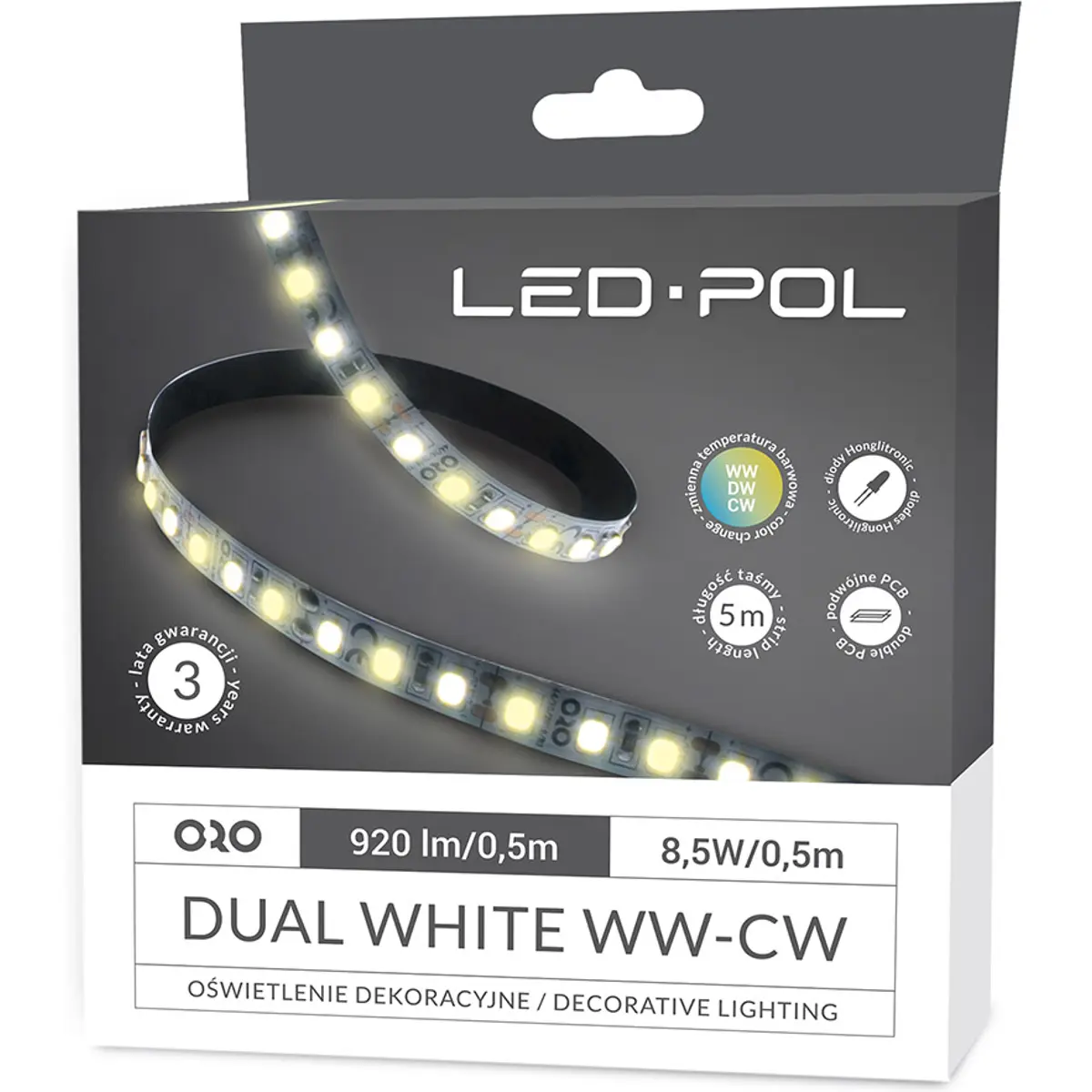 LED POL ORO-STRIP-600L-2835-NWD-WW-CW - Fita de 600 LEDs SMD2835 IP20 12VDC 85W CCT 2800..6500K (branco quente..frio) - rolo de 5.0m