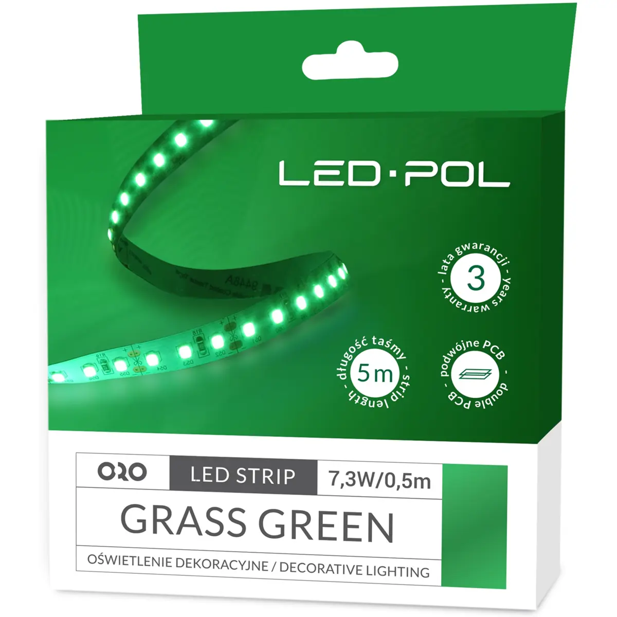 LED POL ORO-STRIP-600L-2835-NWD-GRASS-GREEN - Fita de 600 LEDs SMD2835 IP20 12VDC 14.6W/m (73W) VERDE - rolo de 5.0m