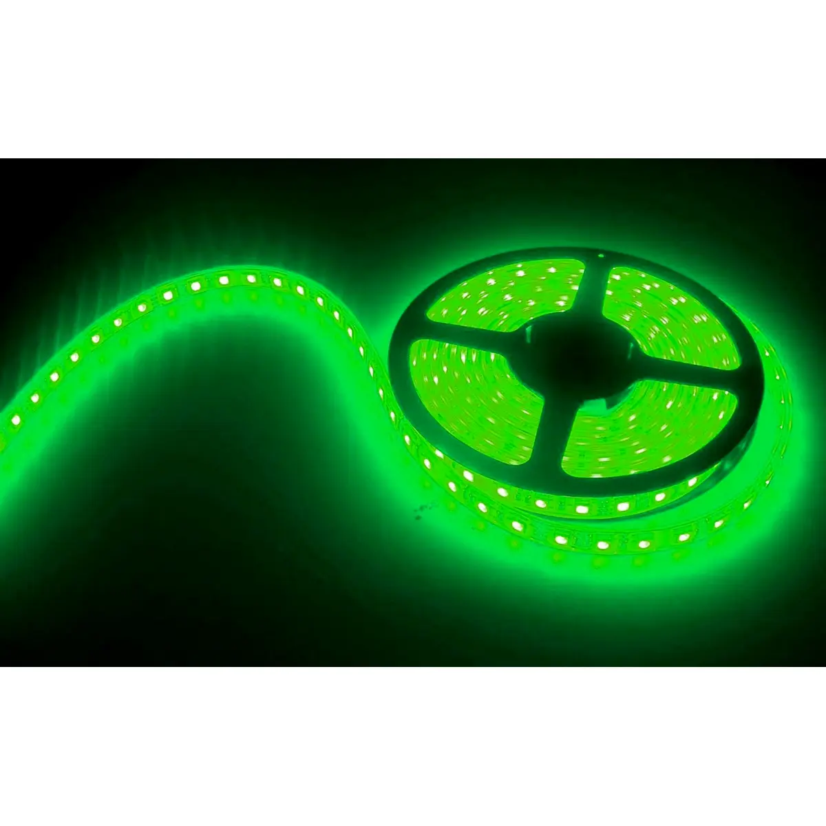 Fita LED verde de 5 m com tecnologia SMD2835, composta por 600 LEDs distribuídos em 73 W de potência total (14,6 W/m). Opera a 12 VDC e oferece um ângulo de abertura de 120° com classificação IP20, concebida para aplicação interna. Possui largura de 10 mm e uma vida útil estimada de 50.000 horas, proporcionando cor estável e duradoura.