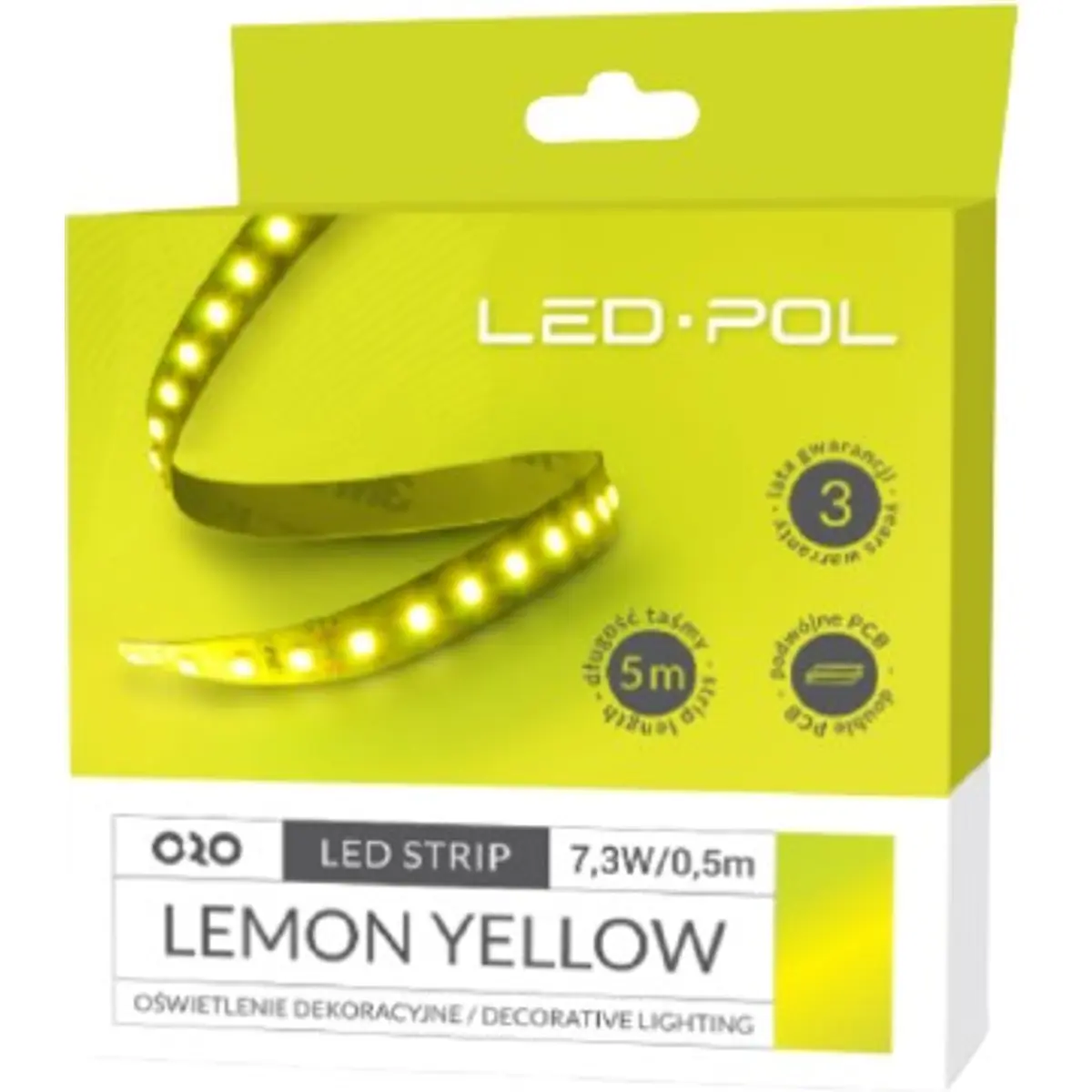 LED POL ORO-STRIP-600L-2835-NWD-LEMON-YELLOW - Fita de 600 LEDs SMD2835 IP20 12VDC 14.6W/m (73W) AMARELO - rolo de 5.0m