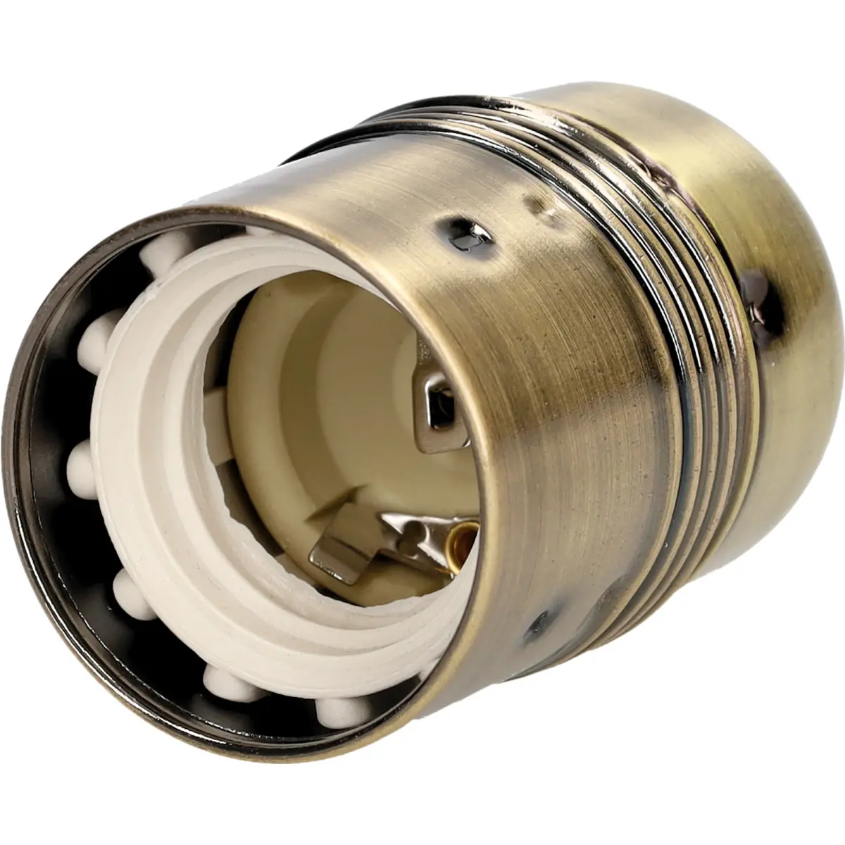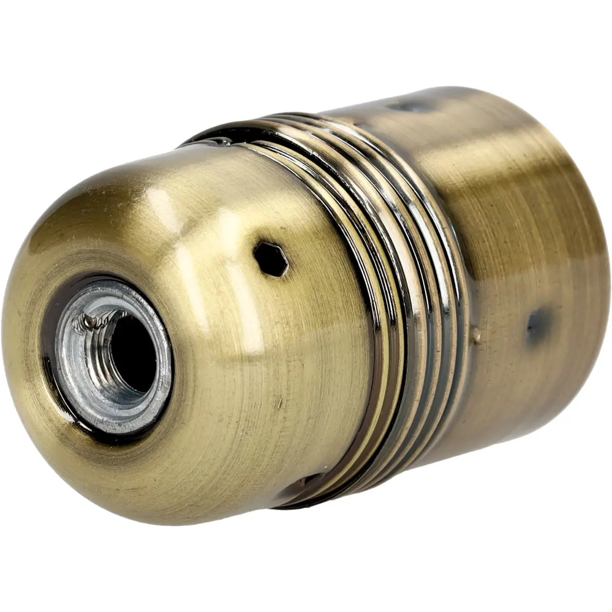 Suporte para lâmpadas com casquilho E27, em latão dourado, ideal para instalações com alimentação até 250V e 60W. Possui rosca M10 para fixação estável e peso de 60 g. Fabricado em latão dourado, compatível com lâmpadas padrão E27 para aplicações em teto, parede ou iluminação decorativa.