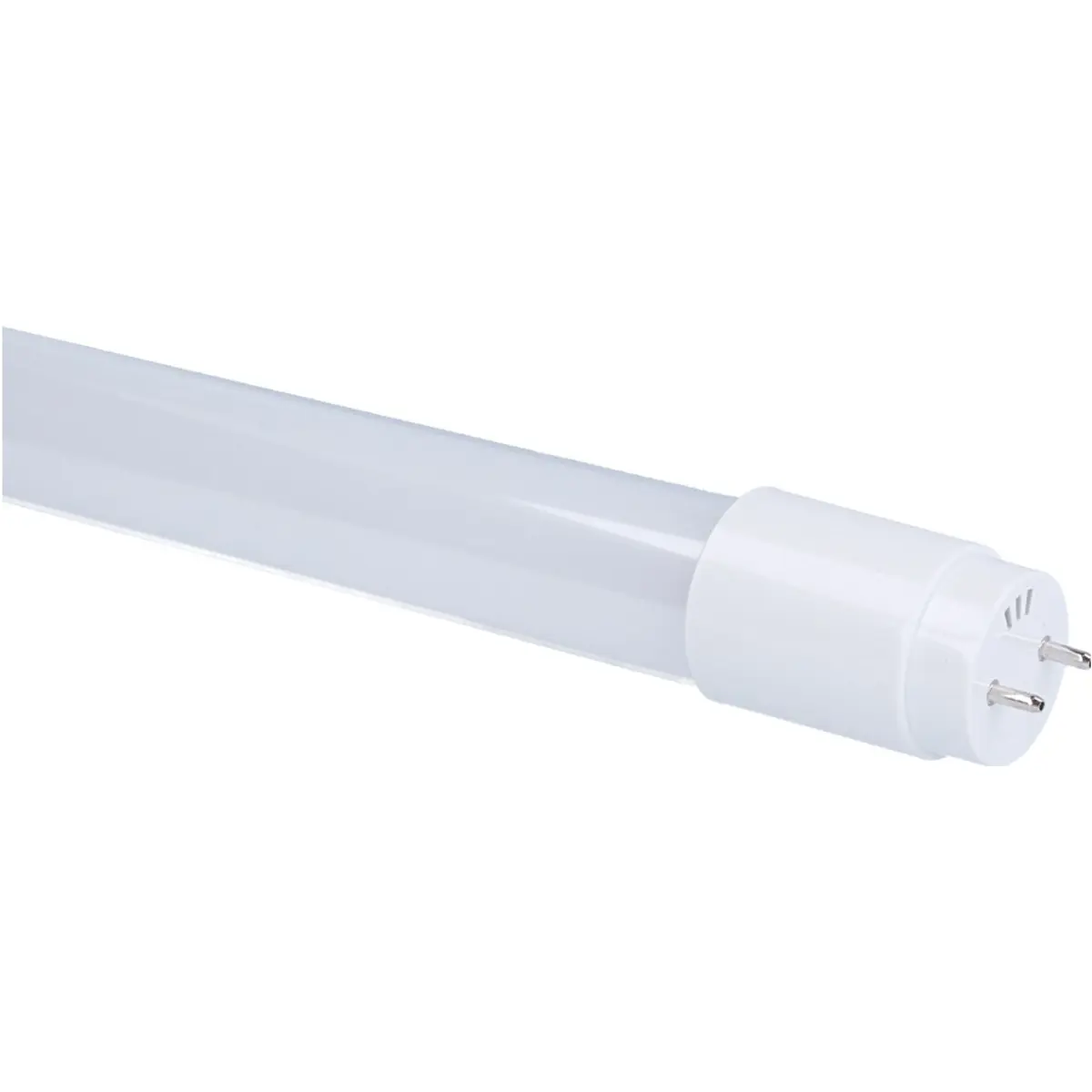 Lâmpada LED tubo T8 de 60 cm com revestimento total em vidro, alimentada a 230V AC e consumo de 9W. Oferece temperatura de cor de 6500K (branco frio) e fluxo luminoso de 1125 lm, cobrindo com ângulo de abertura de 300 graus. O índice de reprodução de cor (CRI) superior a 80 assegura cores fiéis. Com dimensões Ø28x588 mm, é ideal para iluminação eficaz em escritórios, lojas e espaços residenciais modernos, com montagem simples em linha.
