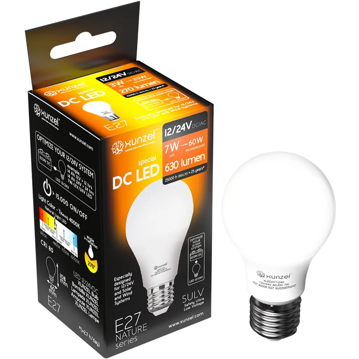 Xunzel LED NATURE 7W-12/24V - Lâmpada LED E27 12/24V 7W 630lm 4000K (branco neutro)