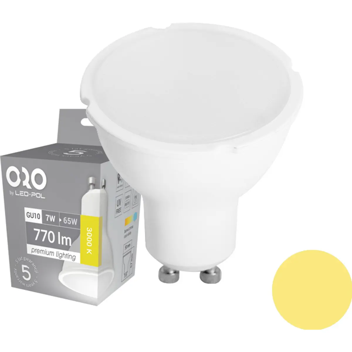 LED POL ORO-PREMIUM-GU10-7W-XP-WW - Lâmpada LED GU10 230V 7W 3000K (branco quente) 616lm