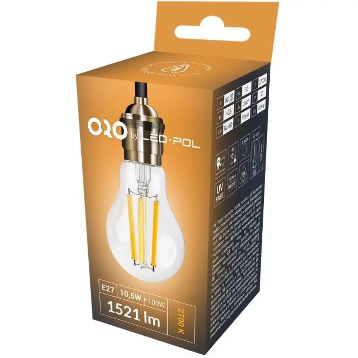 LED POL ORO-E27-A60-FL-CLARO-10,5W-WW - Lâmpada LED tipo filamento E27 A60 230V 11W 3000K (branco quente) 1500lm