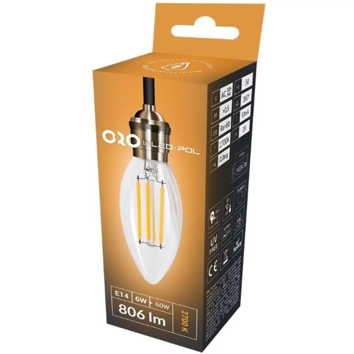 LED POL ORO-E14-C35-FL-CLARO-6W-WW - Lâmpada LED tipo filamento E14 C35 230V 6W 3000K (branco quente) 806lm