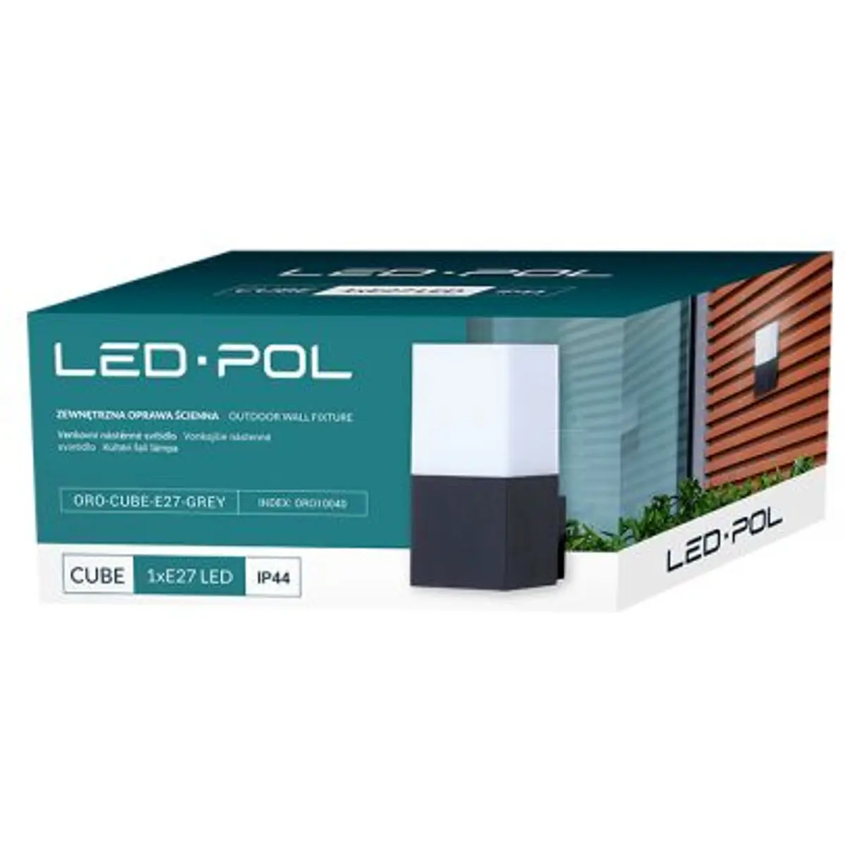 LED POL ORO-CUBE-E27-GREY - Luminária de parede exterior 230V p/ 1x lâmpada LED E27