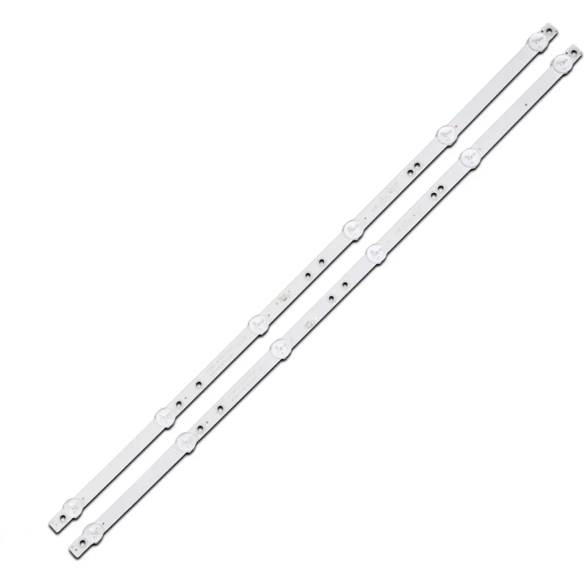 Kit de barras LED para TV de 32 polegadas, com duas unidades. Cada barra possui 6 LEDs e mede 583 mm, oferecendo iluminação adicional para melhorar o contraste e a visibilidade da imagem. O conjunto usa fichas de 3 polos, incluindo duas tomadas, e é compatível com montagem em bancada ou parede. Ideal para espaços de sala, quarto ou escritório, com instalação simples e iluminação estável.